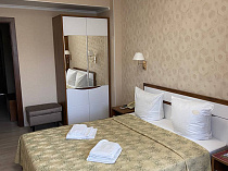 холодильник, телевизор, фен, сейф, телефон, интернет в номере, ванные принадлежности, электрочайник, посуда, две односпальные кровати, санузел с ванной или душевой кабиной