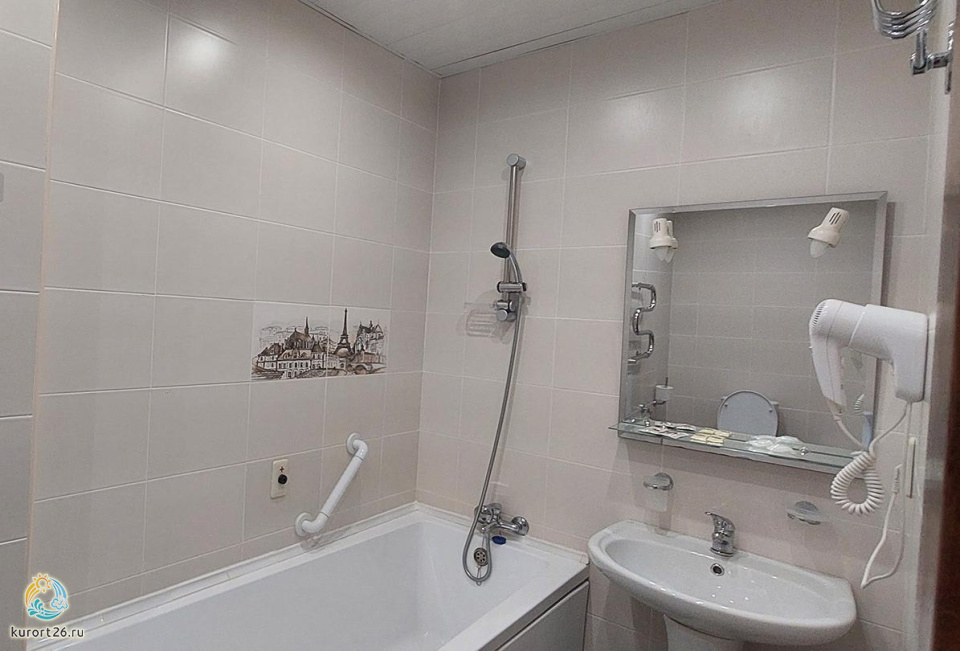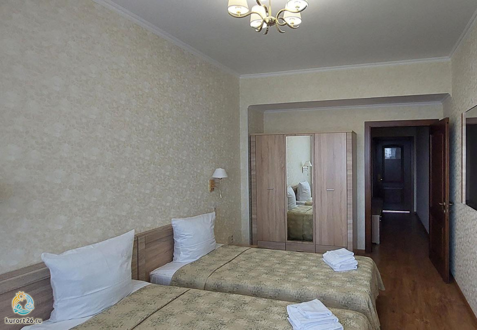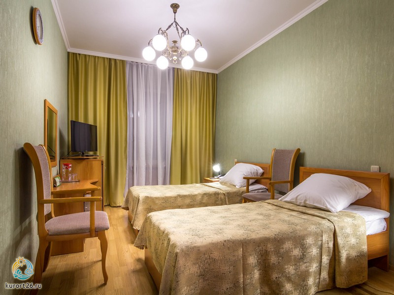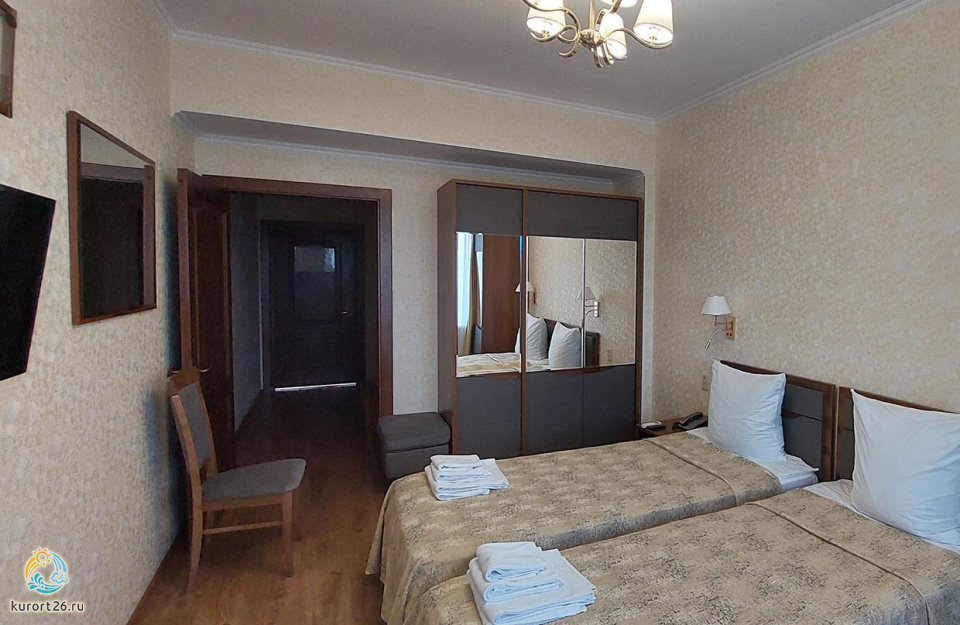 холодильник, телевизор, фен, сейф, телефон, интернет в номере, ванные принадлежности, электрочайник, посуда, две односпальные кровати, санузел с ванной или душевой кабиной