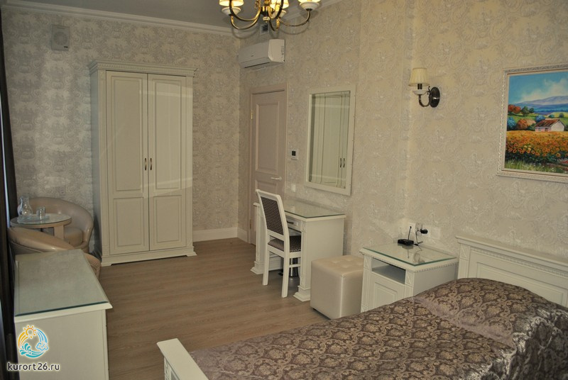 Одноместный номер первого корпуса включает: односпальную кровать, прикроватную тумбочку, журнальный столик, пуфы, шкаф, телевизор, Холодильник, набор посуды и электрочайник. В номере своя ванная комната с необходимым набором принадлежностей и феном, лоджия обставлена летней мебелью, бесплатный доступ в интернет.