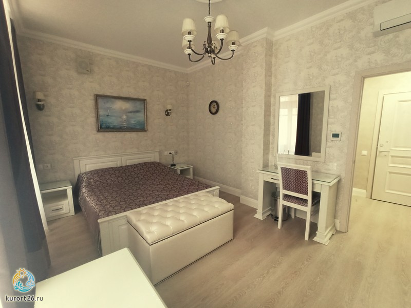 холодильник, кондиционер, фен, набор чайной посуды, балкон, сейф, телефон, интернет в номере, ванные принадлежности, двуспальная кровать, шкаф, набор мягкой мебели, прикроватные тумбочки, обеденный стол, утюг с гладильной доской, электрочайник, ванная комната, два санузла