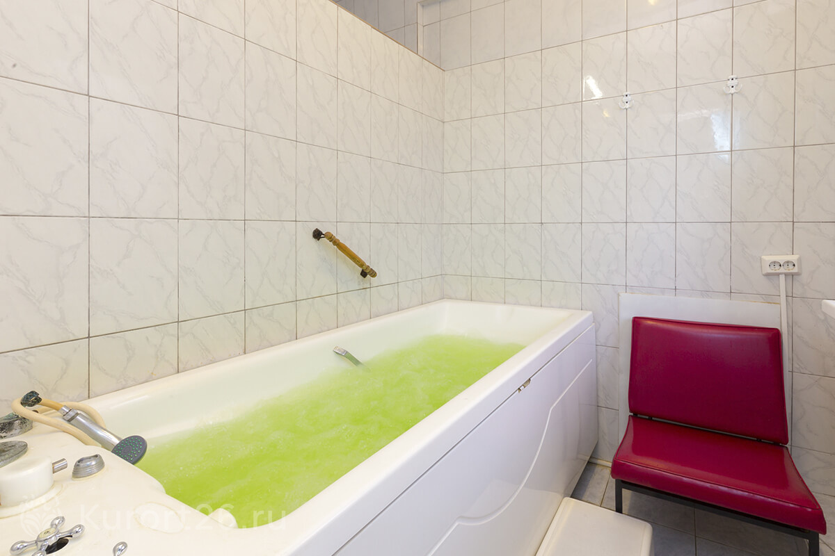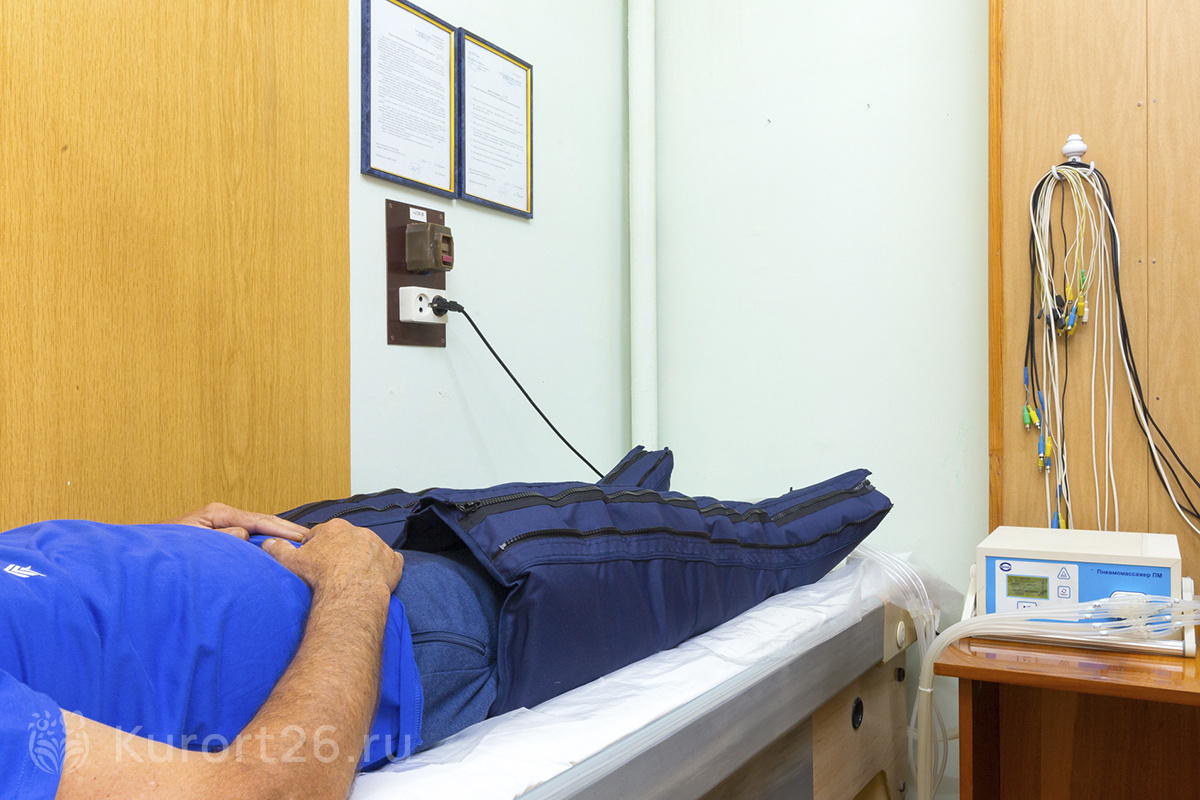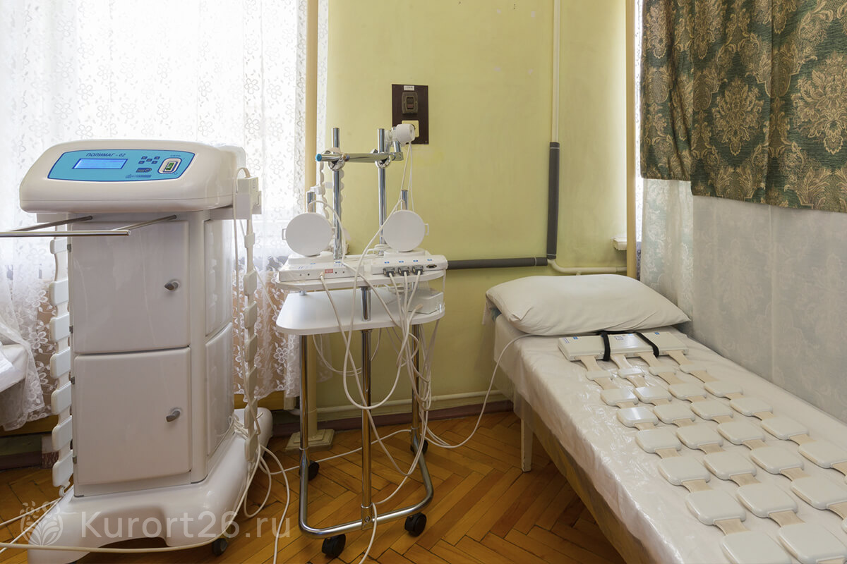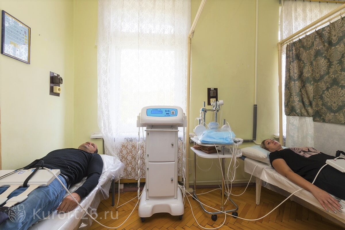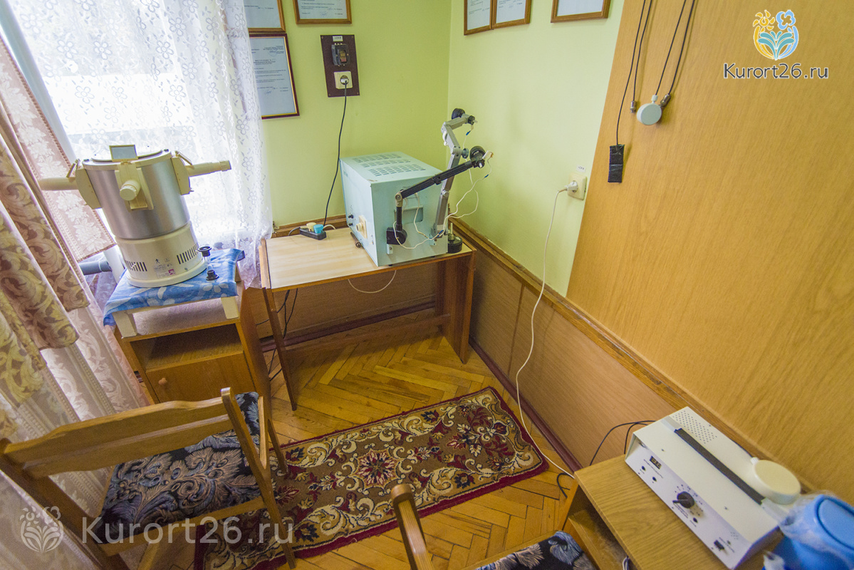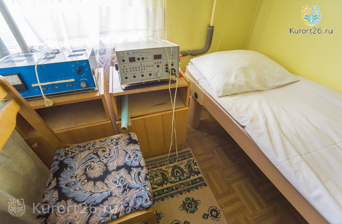 - Лечебная база небольшая, но есть все основные процедуры: 16 видов физиотерапии, лечебные ванны и подводный душ-массаж, грязевые аппликации, массаж, озонотерапия, ингаляции, очистительные процедуры, лечебные капельницы