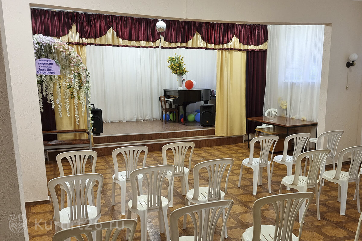 В санатории «Надежда» регулярно проводятся культурно-массовые программы, танцевальные вечера и показы художественных фильмов.