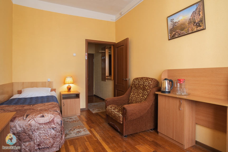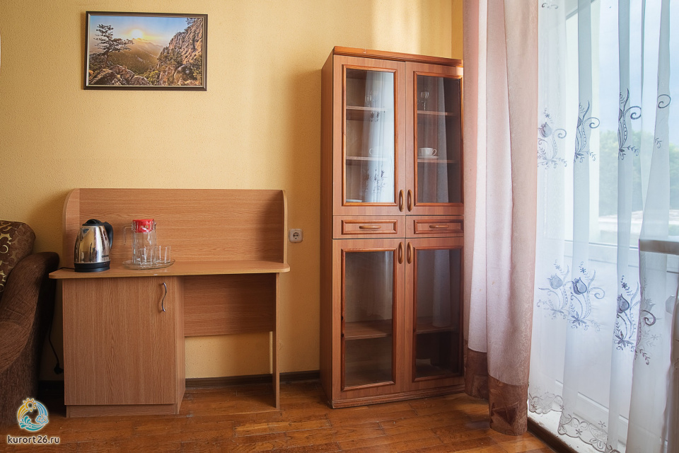 Люкс 2-местный 2-комнатный 1 корпус, площадью 32 кв.м., 2 основных места, 1 дополнительных места, ванна, телевизор, холодильник, электрочайник, кондиционер, класс ремонта хороший, состояние мебели хорошее.