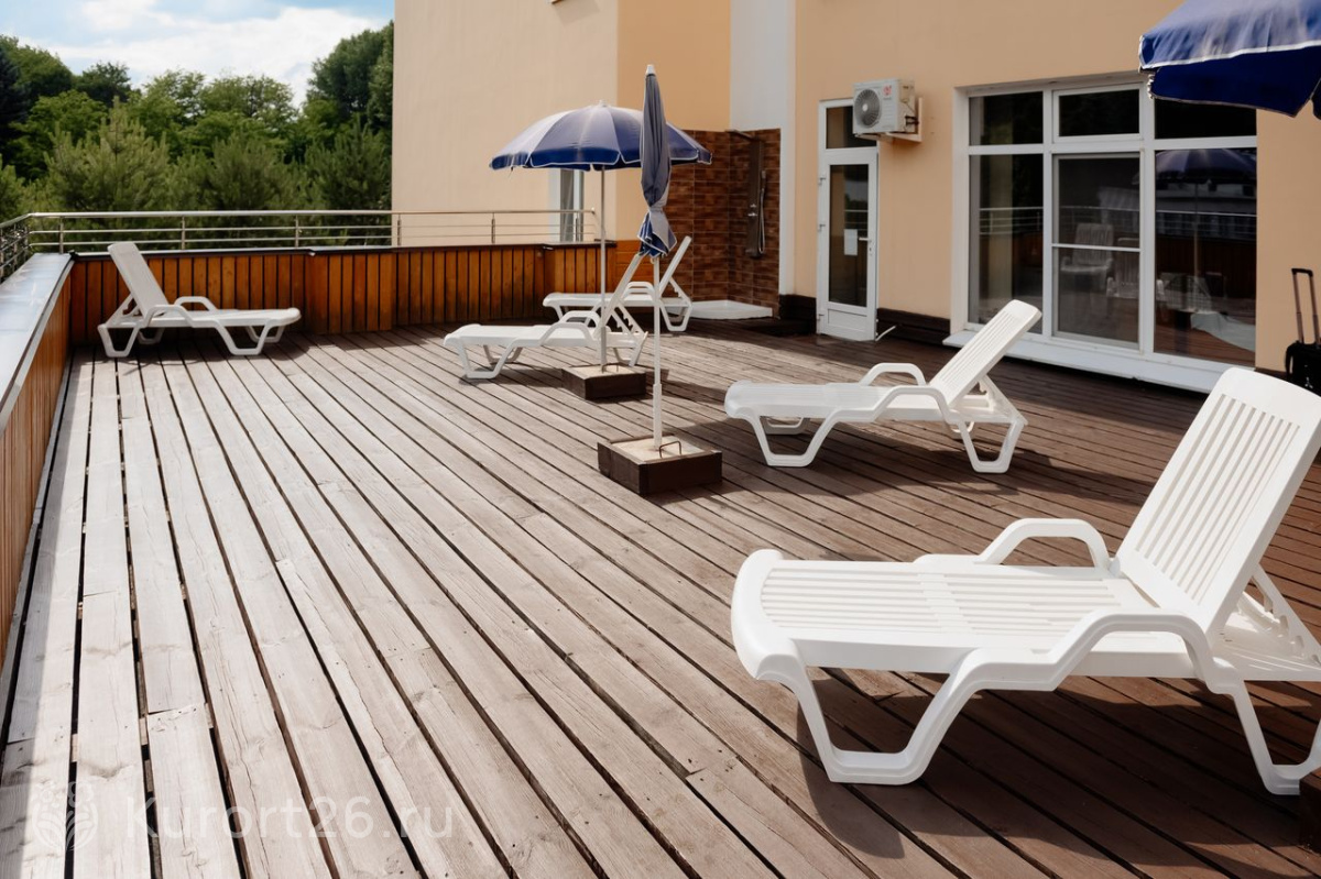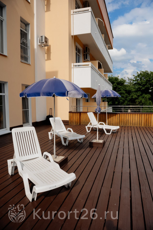 - Небольшая зеленая территория с липами, хвойными деревьями, цветниками. Терраса и лужайки с шезлонгами для загара и отдыха на свежем воздухе