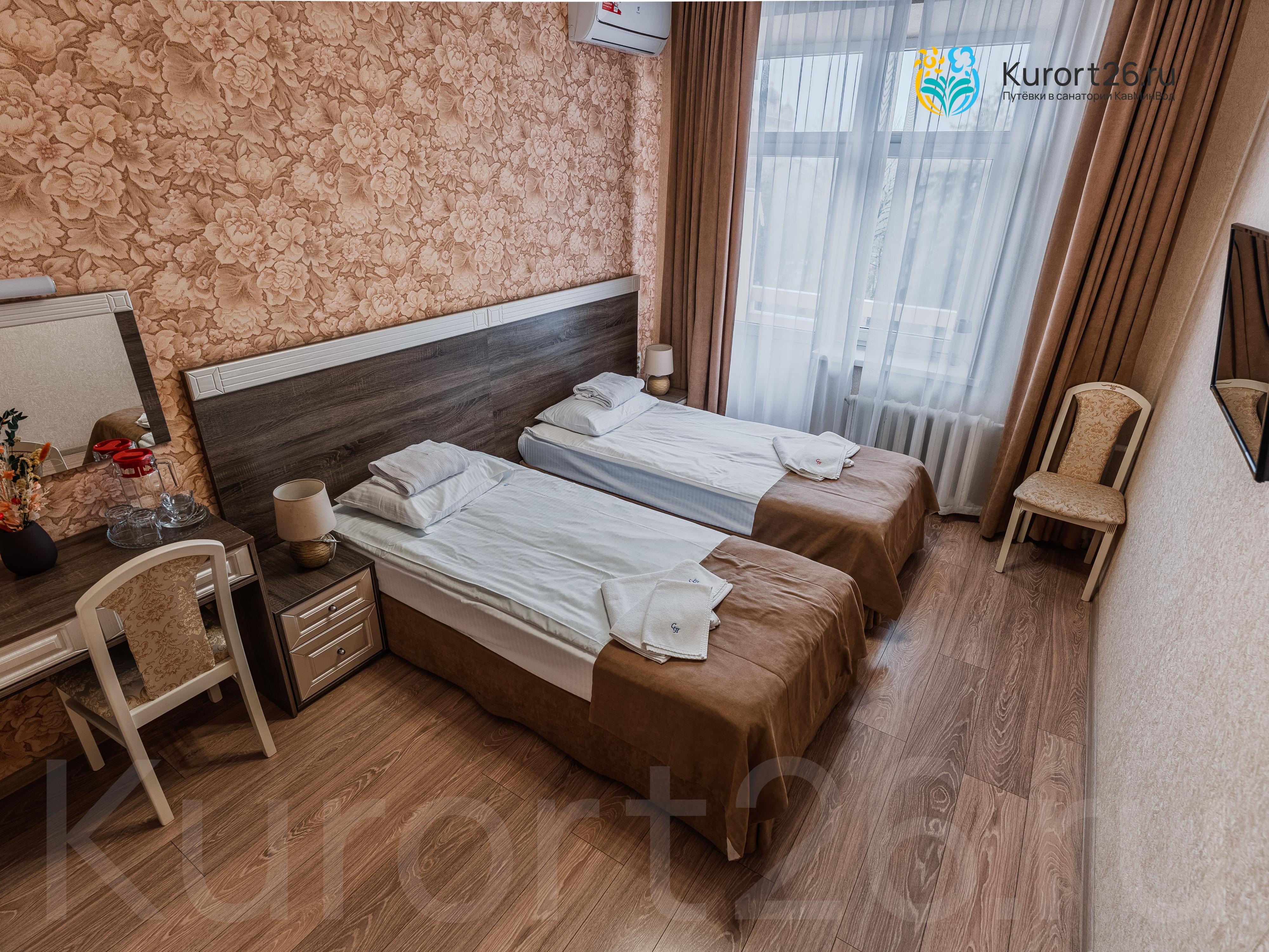 - 18 фото2-местный «Стандарт улучшенный», корпус 2холодильник, кондиционер, телевизор, чайник, фен, набор чайной посуды, сейф, душ, интернет в номере, ванные принадлежности, тапочки, шкаф, две прикроватные тумбочки, два стула, халаты, набор полотенец, две односпальные кровати, Туалетный столик