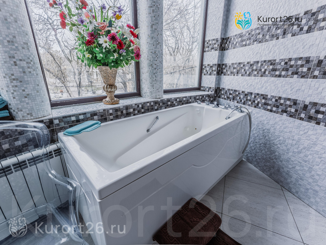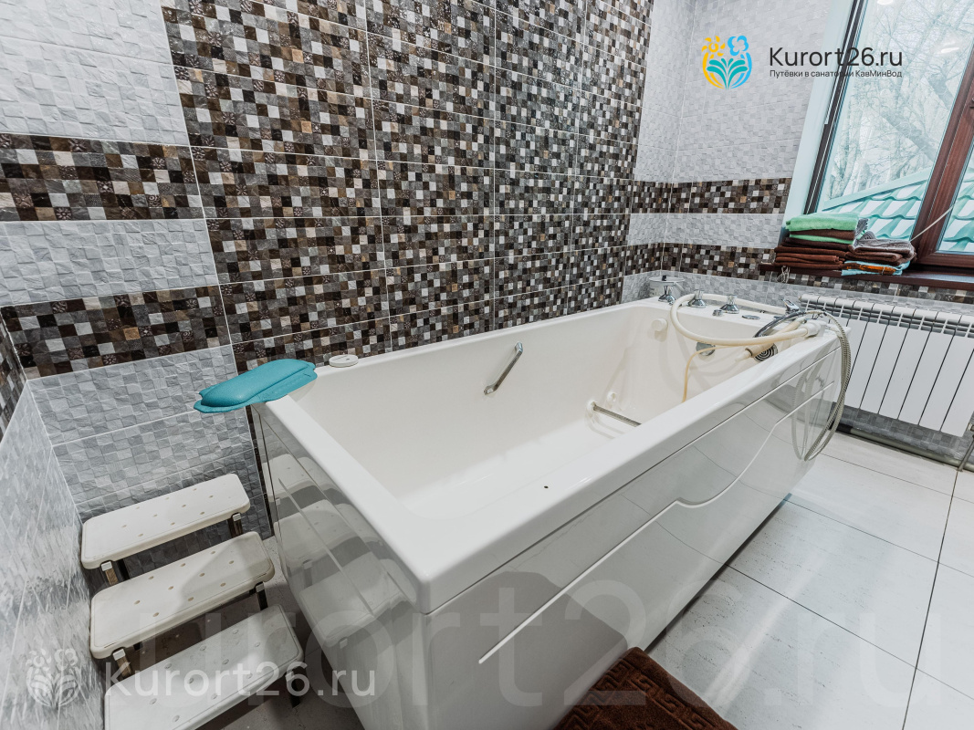 В пансионат проложен минералопровод от Верхних ванн. Целебные воды поставляются прямо из скважины, не теряя полезных свойств.