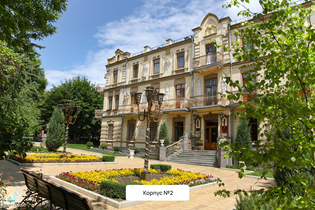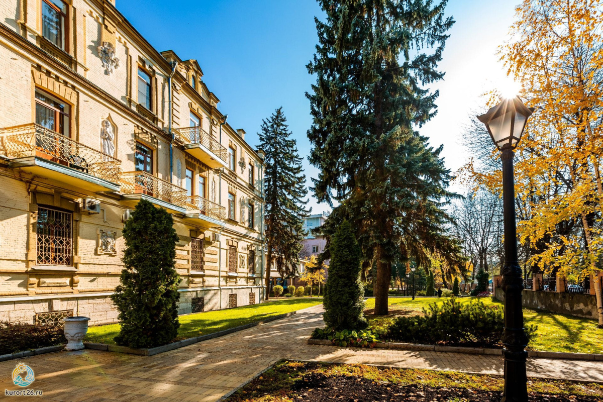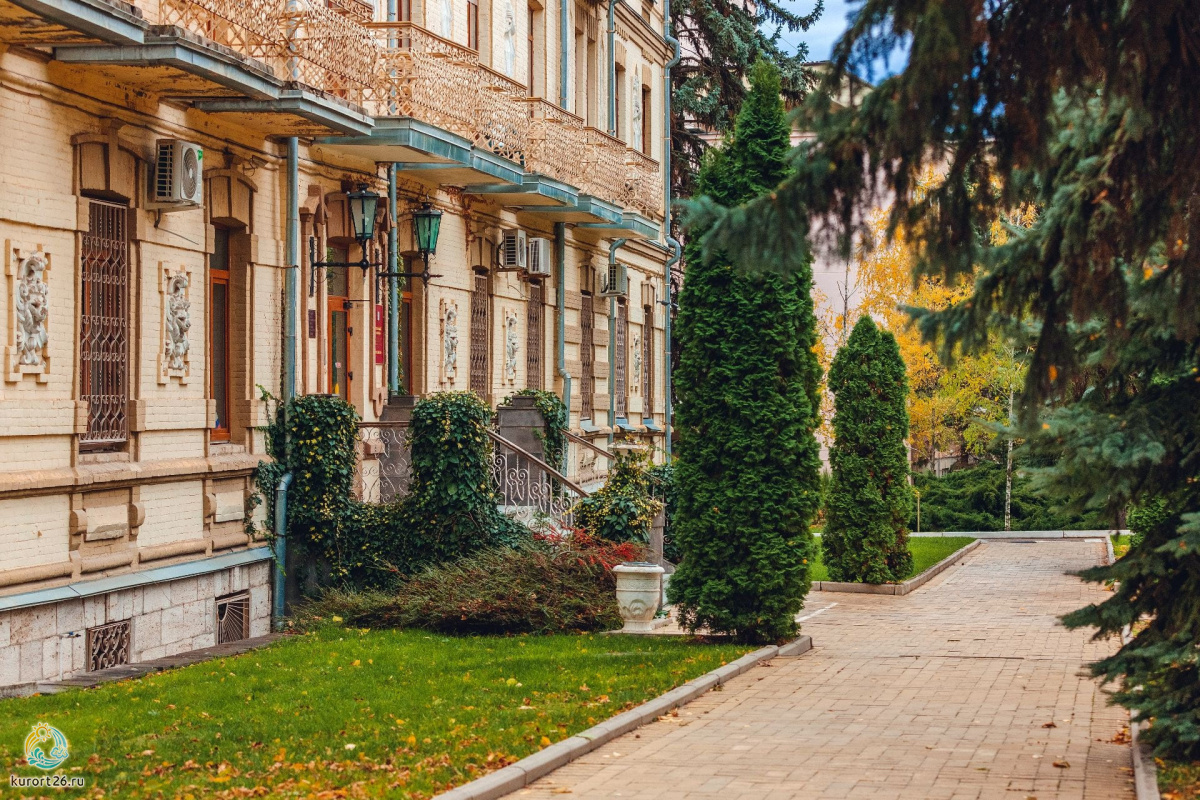 Санаторий «Россия» располагается в одной из самых живописных частей г. Ессентуки. Вблизи санатория находятся лучшие в Европе грязелечебница «им. Н. А. Семашко» и Николаевские ванны.