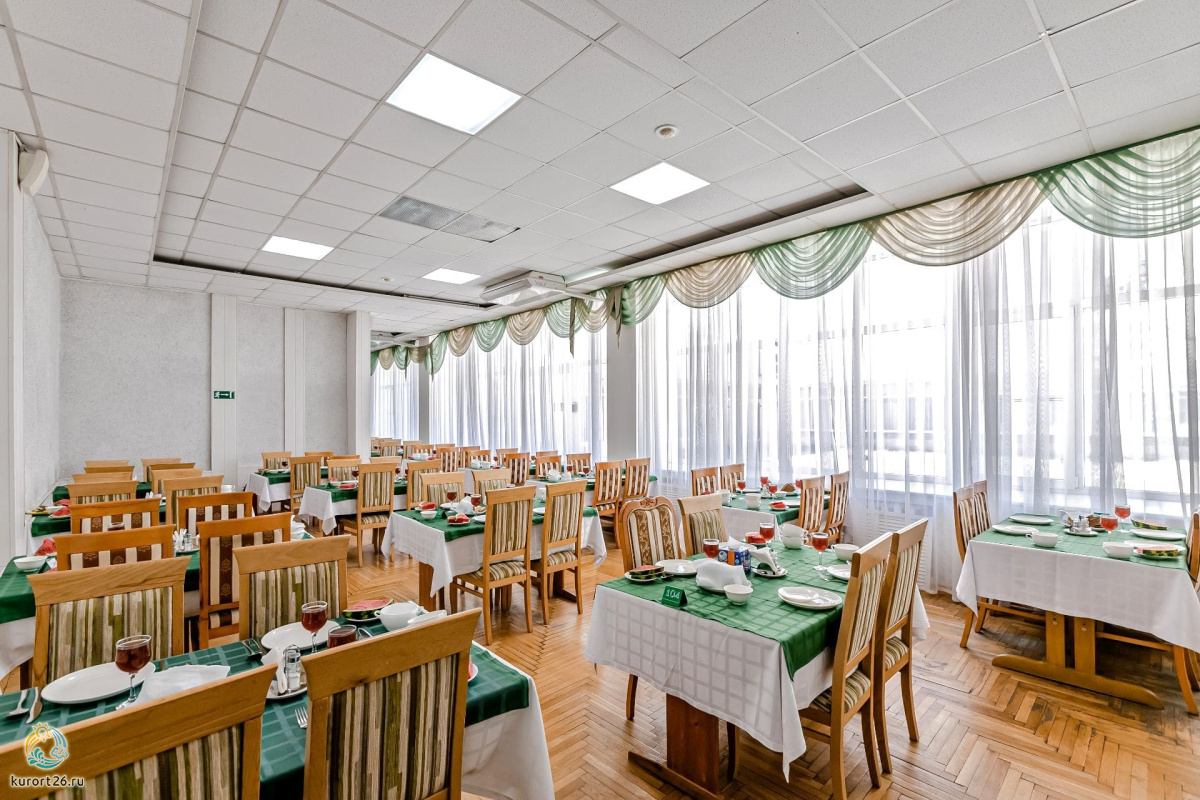 Одна из главных составляющих в лечебном процессе – правильно организованное и продуманное питание. В санатории «Россия» питание трехразовое по системе «меню-заказ». При составлении меню санатория обязательно учитываются рекомендации лечащего врача. В санатории так же предусмотрено диетическое питание, которое назначает специалист-диетолог. В рационе круглый год – овощные, мясные, крупяные, рыбные блюда. Широко представлены собственная выпечка, фирменные кулинарные изделия.