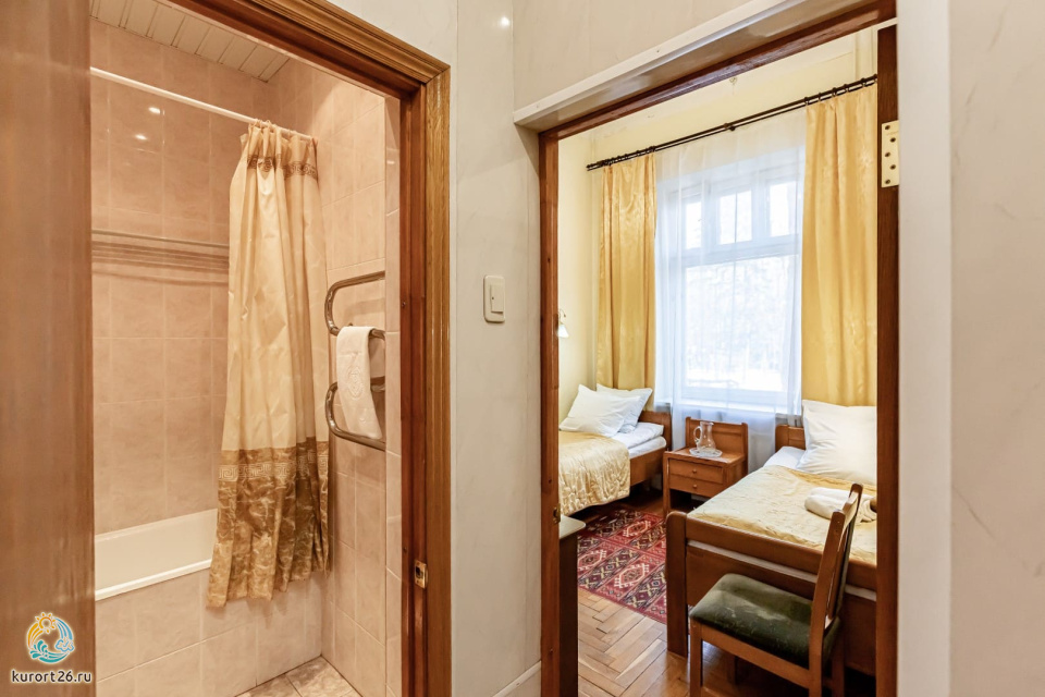 холодильник, телевизор, набор чайной посуды, балкон, душ, телефон, кресло, две односпальные кровати