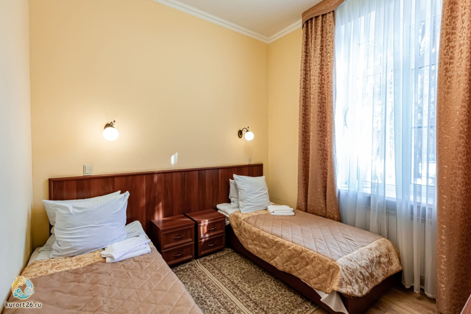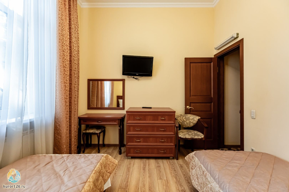 холодильник, телевизор, набор чайной посуды, балкон, душ, телефон, кресло, две односпальные кровати