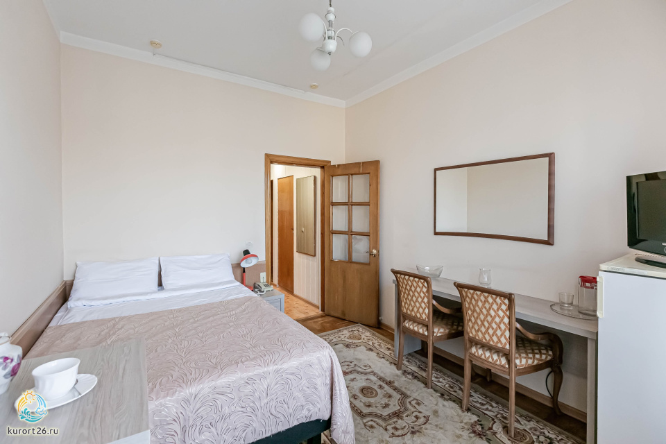 холодильник, телевизор, набор чайной посуды, балкон, душ, телефон, кресло, две односпальные кровати