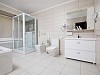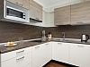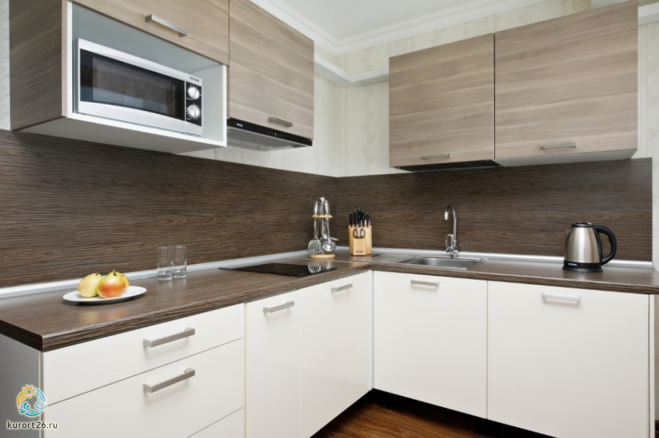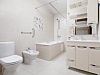 холодильник, кондиционер, фен, набор чайной посуды, сейф, ванные принадлежности, халат, тапочки, двуспальная кровать, набор мягкой мебели, прикроватные тумбочки, обеденный стол, микроволновая печь, электрочайник, мини-кухня, стол, ванная комната, два телевизора