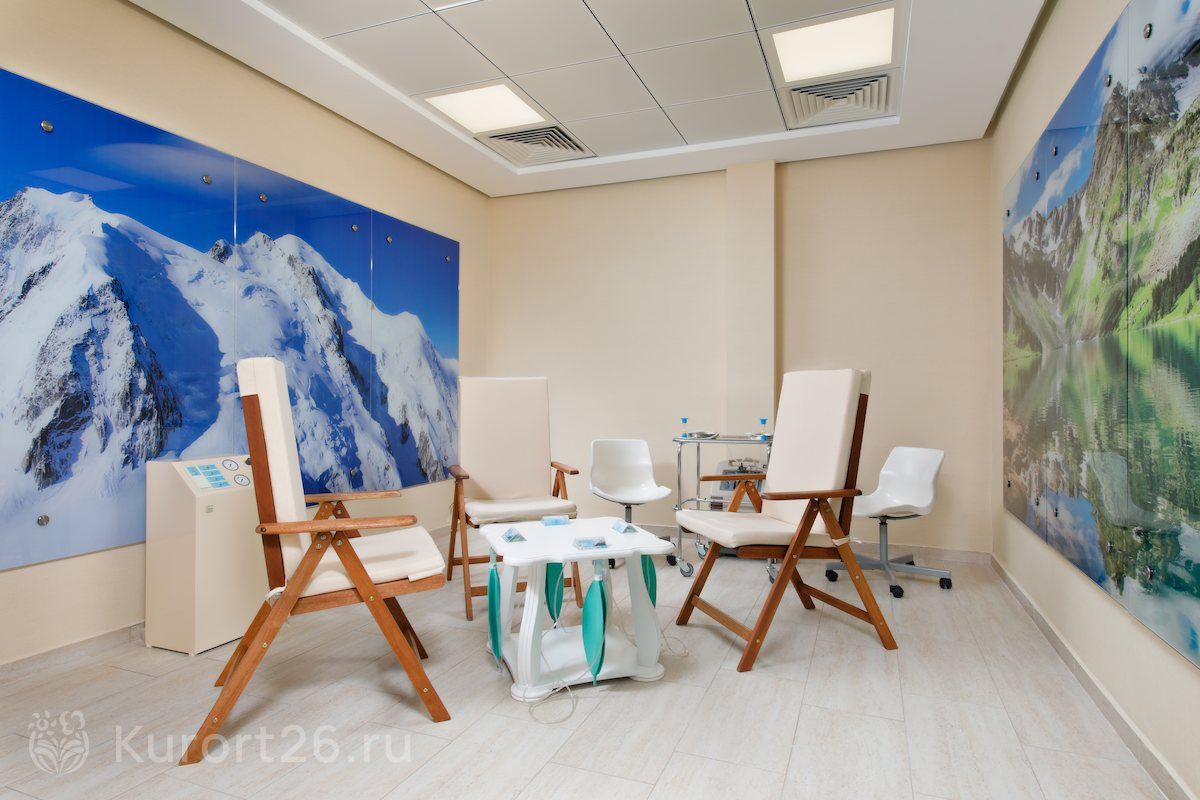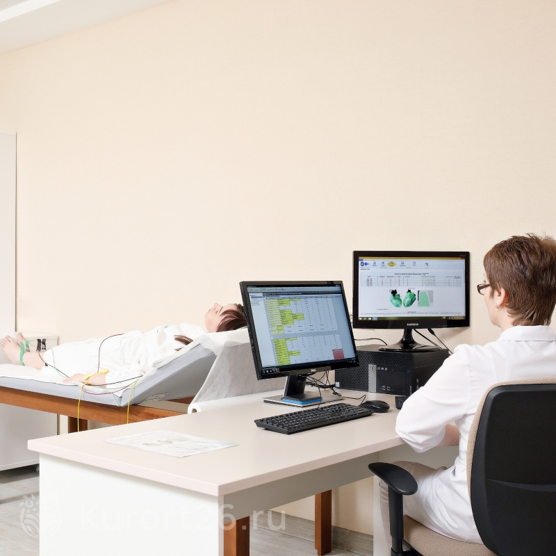 Медицинский центр санатория работает без выходных, включая праздничные дни. Ведут приём врачи 15 профилей, в том числе кандидаты медицинских наук. В собственной лаборатории проводятся экспресс-анализы, что позволяет быстро начать лечение. Полный спектр диагностики: УЗИ (включая ТРУЗИ и УЗДГ), «Ангиоскан», «Кардиовизор», дыхательные тесты «Хепискрин» и «Гастролайзер», гастроскопия, цистоскопия, видеокольпоскопия. Лечение включает более 30 видов физиотерапии, грязелечение, бальнеотерапию, озоно- и карбокситерапию, криокапсулу, лечебные капельницы.
