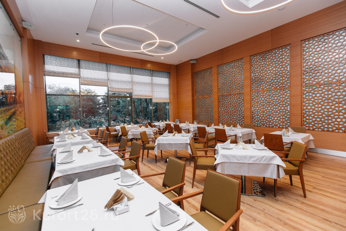 В санатории 222 номера разных категорий с современным дизайном, продуманной эргономикой и вниманием к деталям. Корпуса здравницы соединены тёплыми переходами, что позволяет гостям посещать ресторан, лечебные процедуры и бассейн, не выходя на улицу.