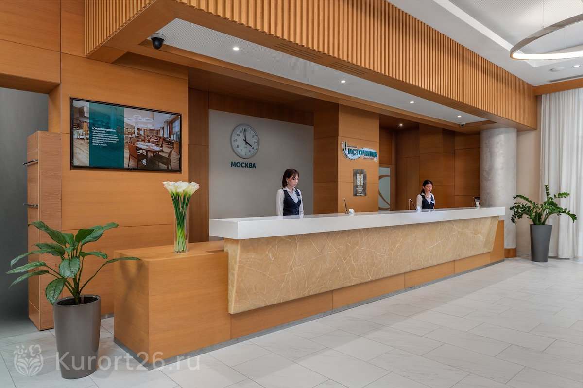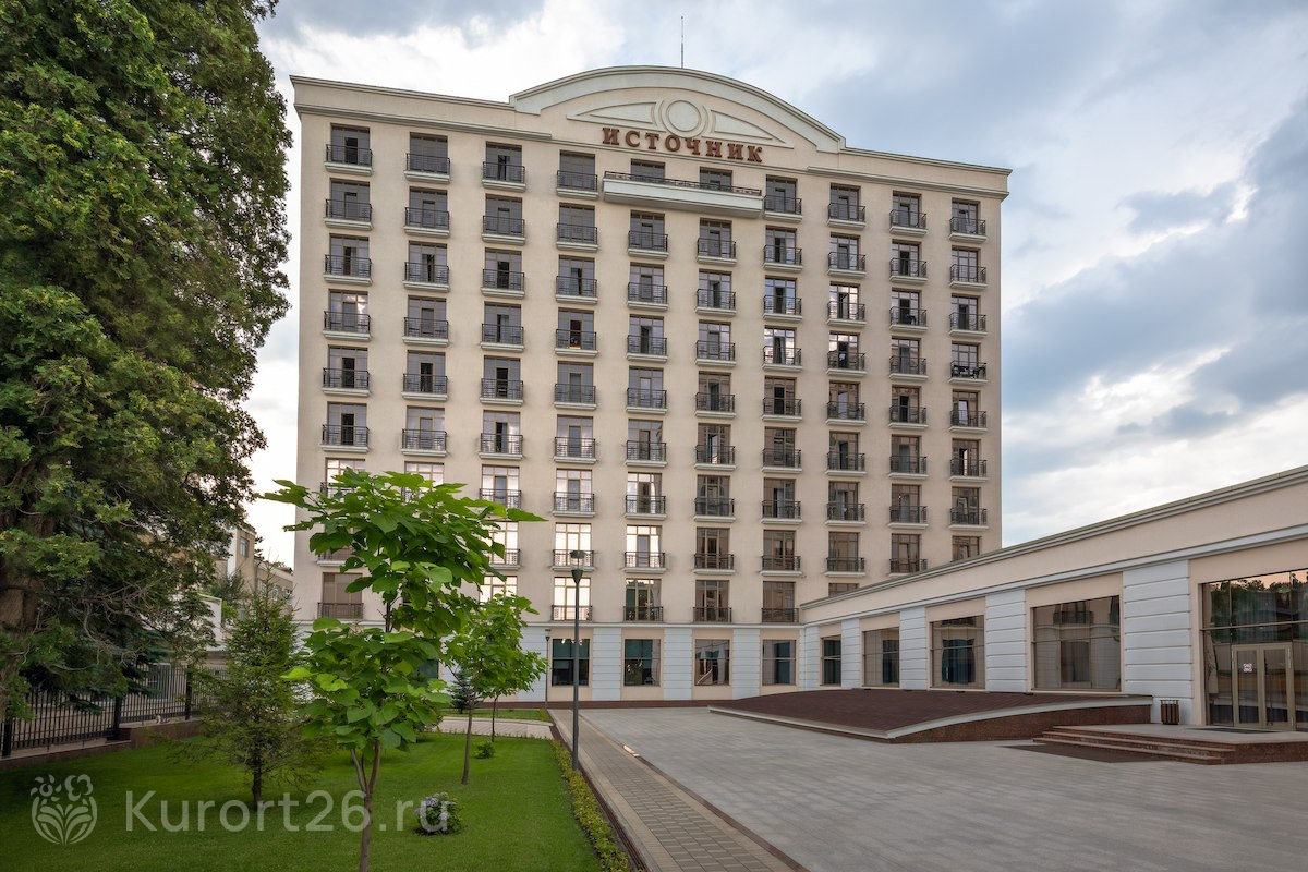 Санаторий «Источник» расположен в центре курортной зоны Ессентуков, в 3-х минутах прогулки от Курортного парка, Грязелечебницы им. Семашко, бювета «Источник № 4». Санаторий новый, открыт в 2016 году. Комплекс спроектирован по современным стандартам и соответствует уровню 4*: номера отельного типа, акватермальная зона, комфортные процедурные кабинеты с новым оборудованием.