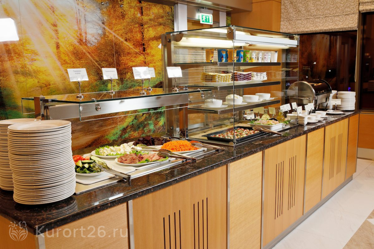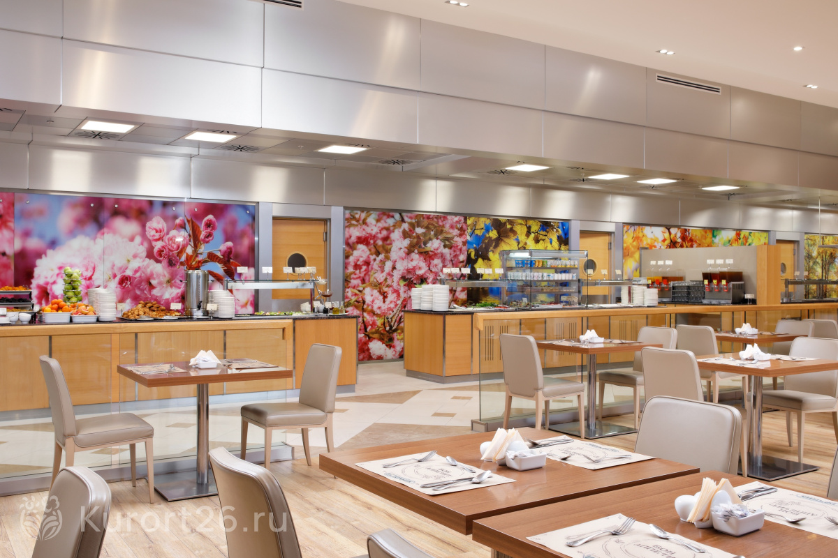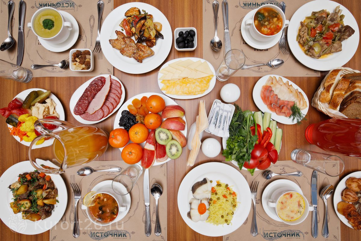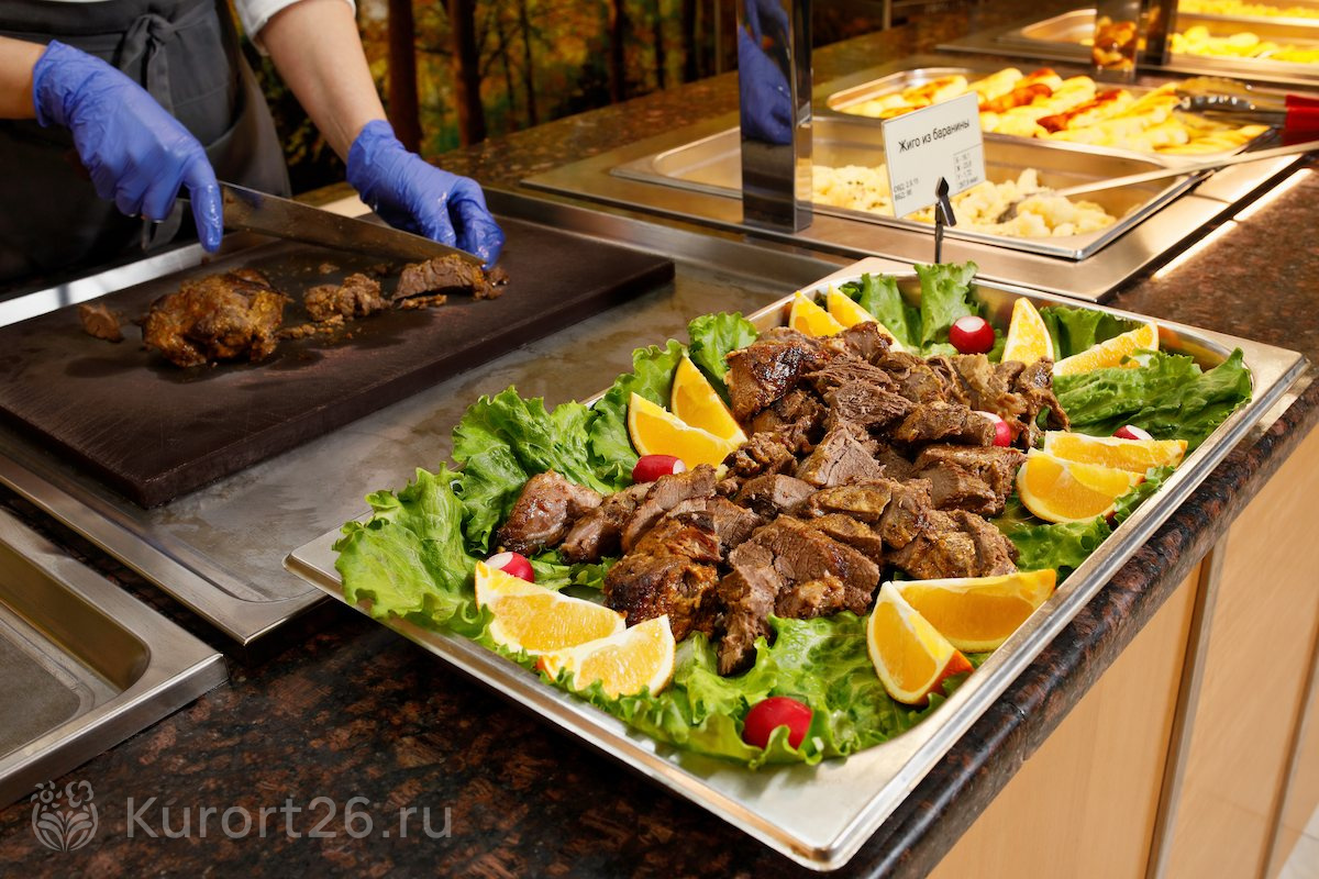 В путёвку включено трёхразовое питание «шведский стол» в ресторане «Бон аппетит». В ежедневном меню представлен широкий выбор блюд, разработанных шеф-поваром совместно с диетологом. Всего в ассортименте более 200 блюд, каждую неделю проводятся тематические вечера национальной кухни.