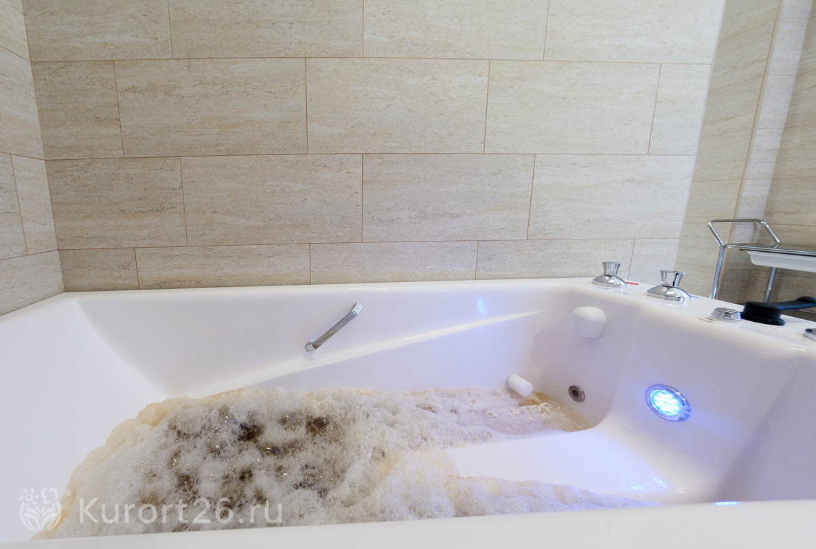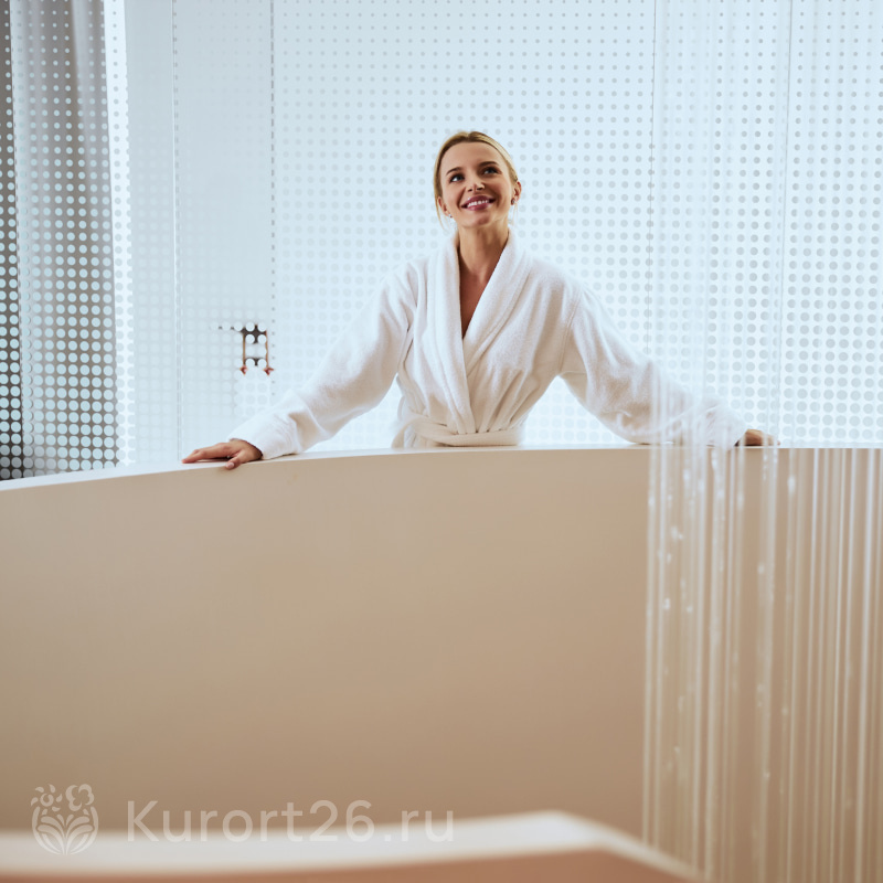 В санатории «Источник» в Ессентуках крытый бассейн 22×10 м с панорамными окнами и потолком. Температура воды поддерживается в пределах +28...+34 °C. Используется современная многоступенчатая система очистки воды. Есть гидромассажные зоны: подводные массажные форсунки, гейзерные установки и каскадный водопад.