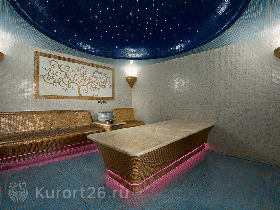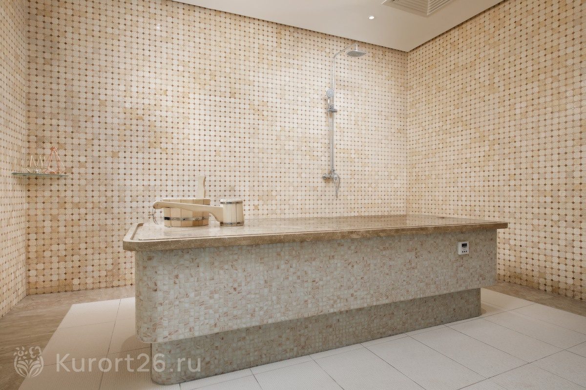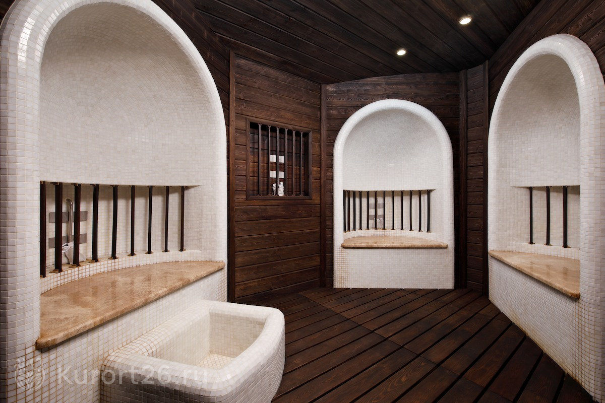 Акватермальный комплекс включает бассейн 22×10 м с панорамными потолком и окнами и гидромассажными зонами, русскую баню, хаммам, финскую сауну, сенную и арома-сауну. Посещение можно дополнить спа-ритуалами и чаепитием.