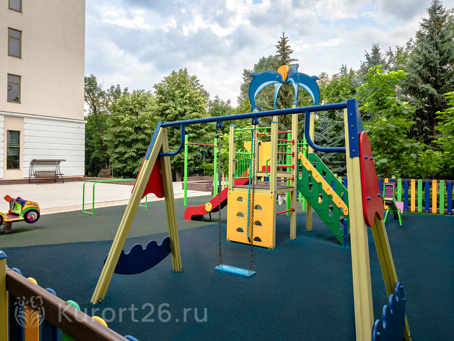 В санатории есть детская комната с игровым комплексом и открытая игровая площадка. Профессиональные аниматоры проводят развивающие занятия, тематические мастер-классы и развлекательные программы. Дети от 7 лет могут посещать бассейн с отдельной детской зоной.