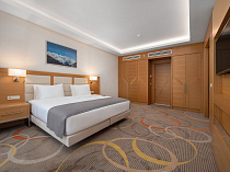 холодильник, кондиционер, чайник, фен, набор чайной посуды, балкон, сейф, телефон, интернет в номере, мини-бар, халат, тапочки, ванна, весы напольные, мини-кухня, обеденная группа, два кресла, два телевизора, журнальный столик, Душевая кабина, гостевой санузел