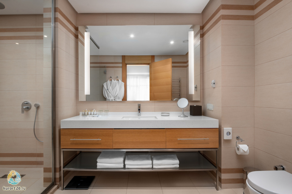 холодильник, кондиционер, телевизор, чайник, фен, балкон, сейф, телефон, интернет в номере, мини-бар, ванные принадлежности, халат, диван, электрочайник, весы напольные, журнальный столик, посуда, двуспальная кровать с ортопедическим матрасом, чайный набор, гостевой санузел