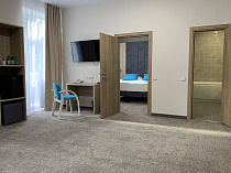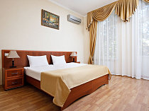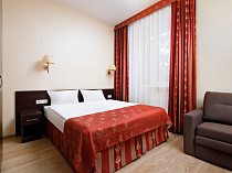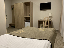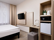 кондиционер, телевизор, фен, сейф, интернет в номере, двуспальная кровать, кресло, набор косметических средств, Рабочая зона с письменным столом и удобным стулом
