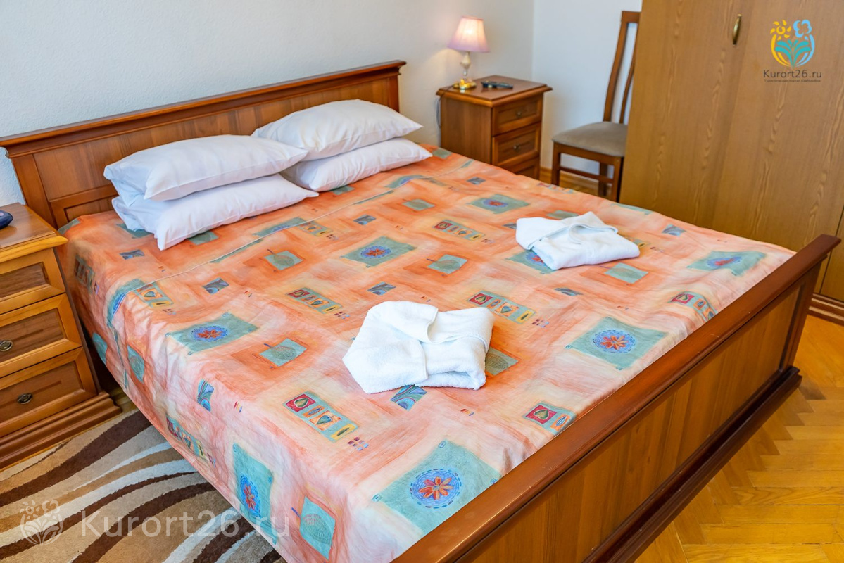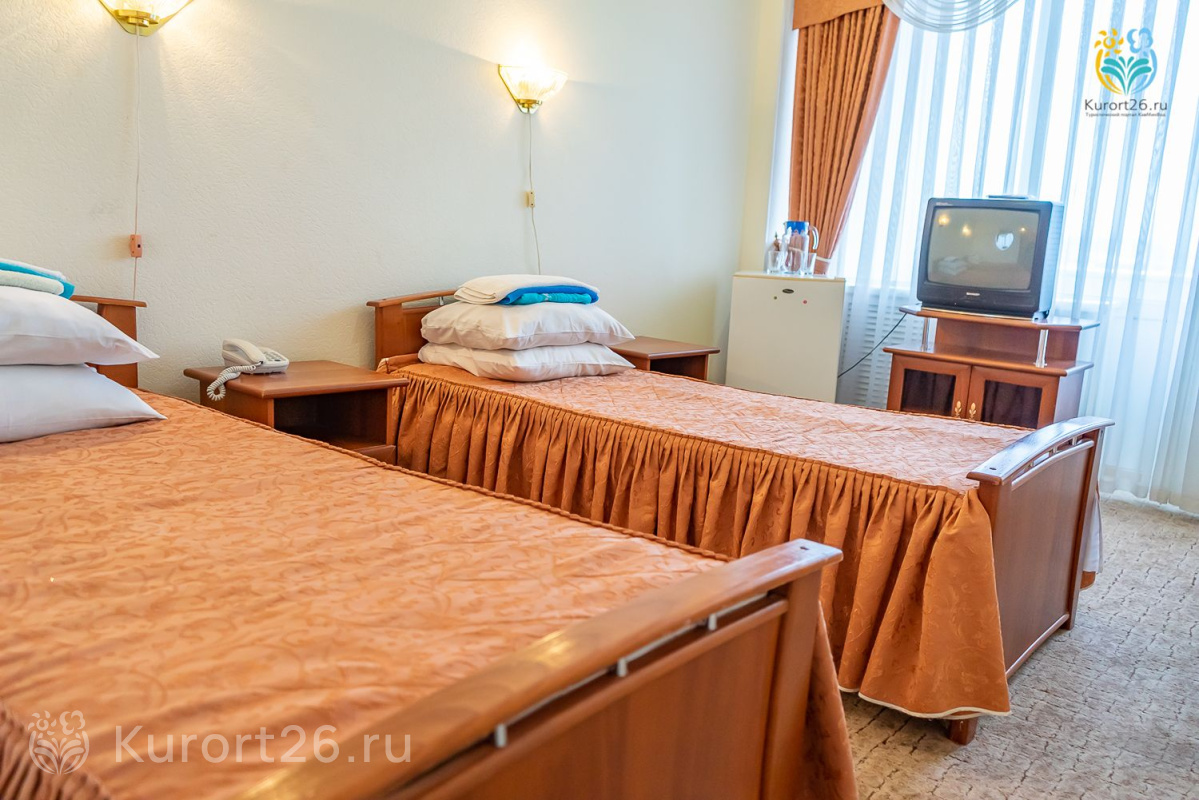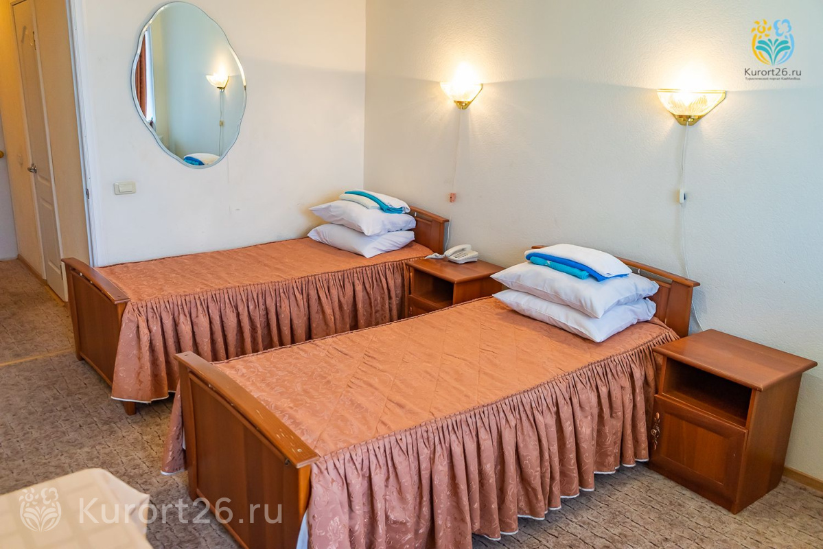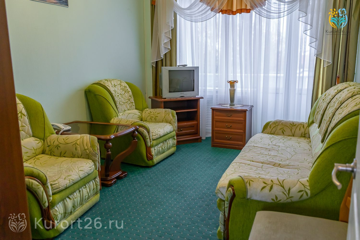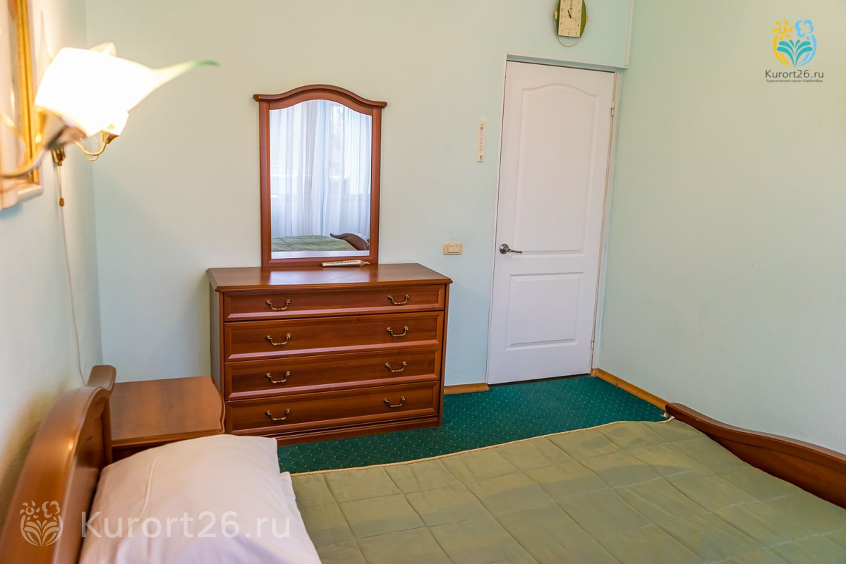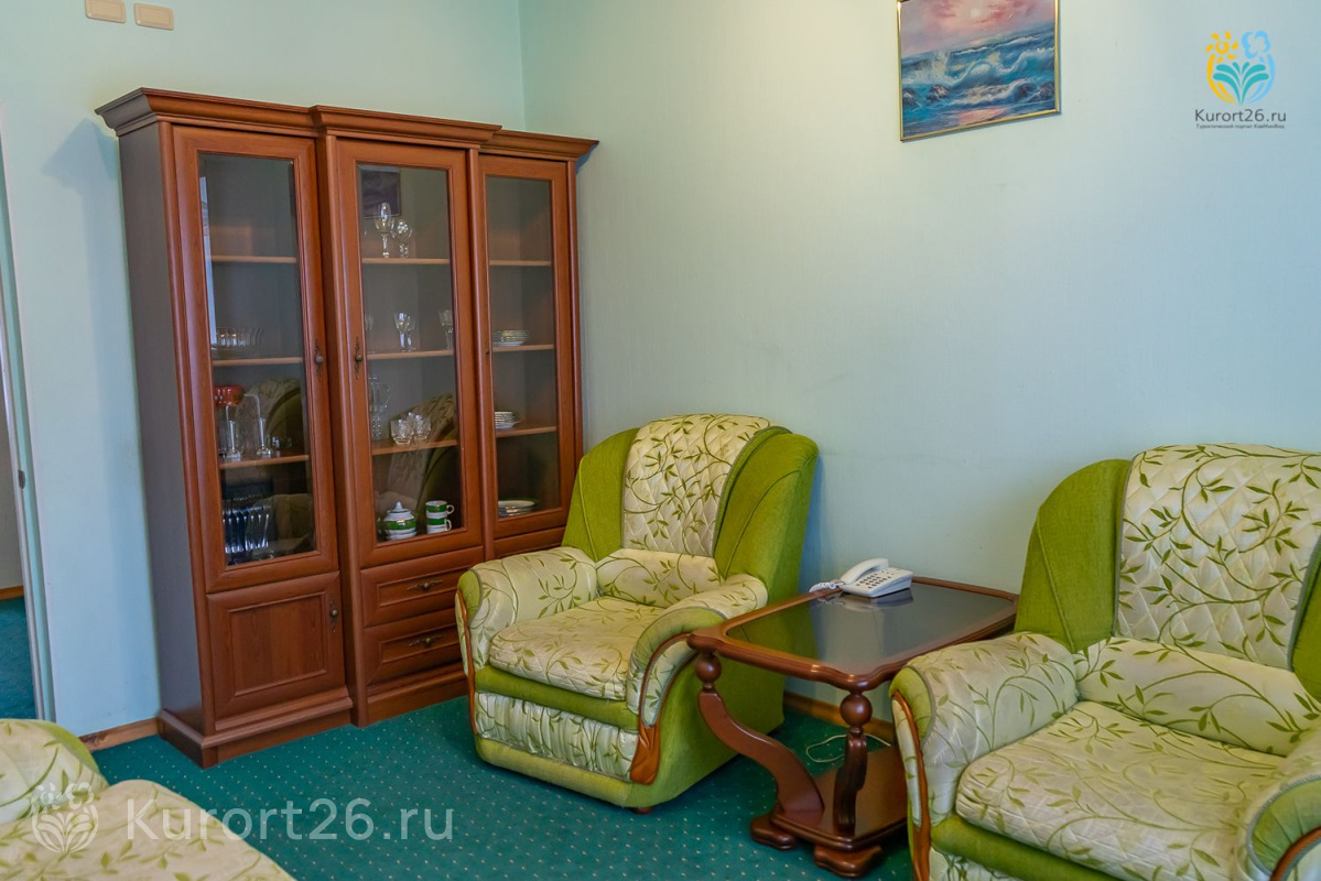 Санаторий выбирала по интернету, посмотрела, и он мне очень понравился. Я собралась и приехала. Отношение персонала замечательное, все просто молодцы! Всем огромное спасибо! Все очень приветливые! Лечение хорошее, врач- Борис Яковлевич. Сначала он с тобой знакомится, потом назначает все, что тебе нужно. И все процедуры идут как по маслу, доплачивать не приходится. В питании вполне хватает и овощей, и фруктов. Все соответствует диете, которую прописал врач. Готовят вкусно, у нас заказ-меню. В номере все довольно комфортно, хотя мебель уже устаревшая. Есть и кровати, и диваны, постель меняется через пять дней. Уборка проводится регулярно. У нас горничная Валентина, которая всегда поддерживает чистоту и порядок. К сожалению, территория самого санатория не вся ухожена. Наверное, у них просто не хватает средств на это. Территория довольно большая, приятно посидеть на лавочке, послушать щебет птиц. Были на экскурсии в Пятигорске, в Железноводске, по Лермонтовским местам ездили. Сегодня едем по Ессентукам, очень насыщенная программа. Я на Кавказе первый раз, мне нравится все! С удовольствием приеду еще!