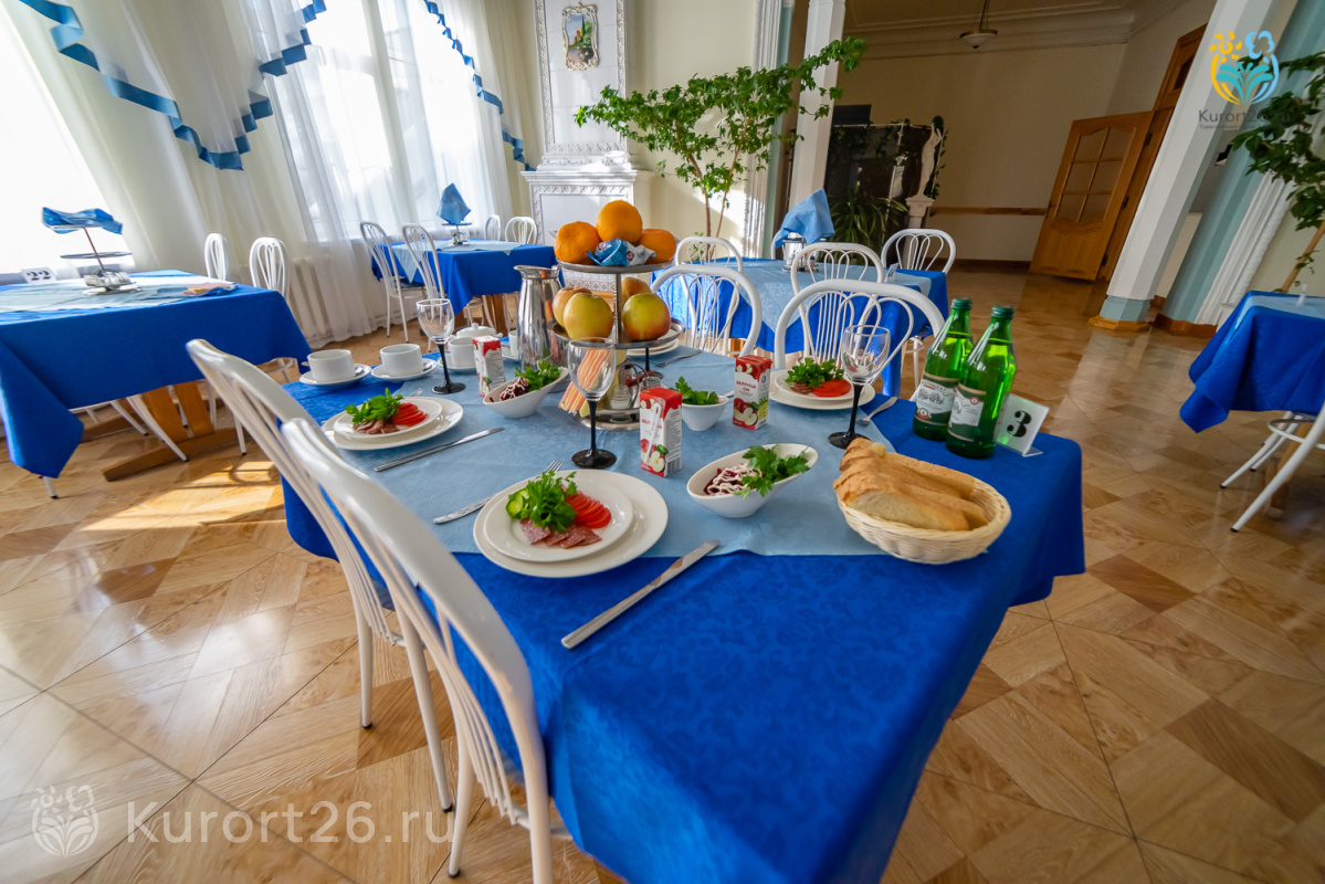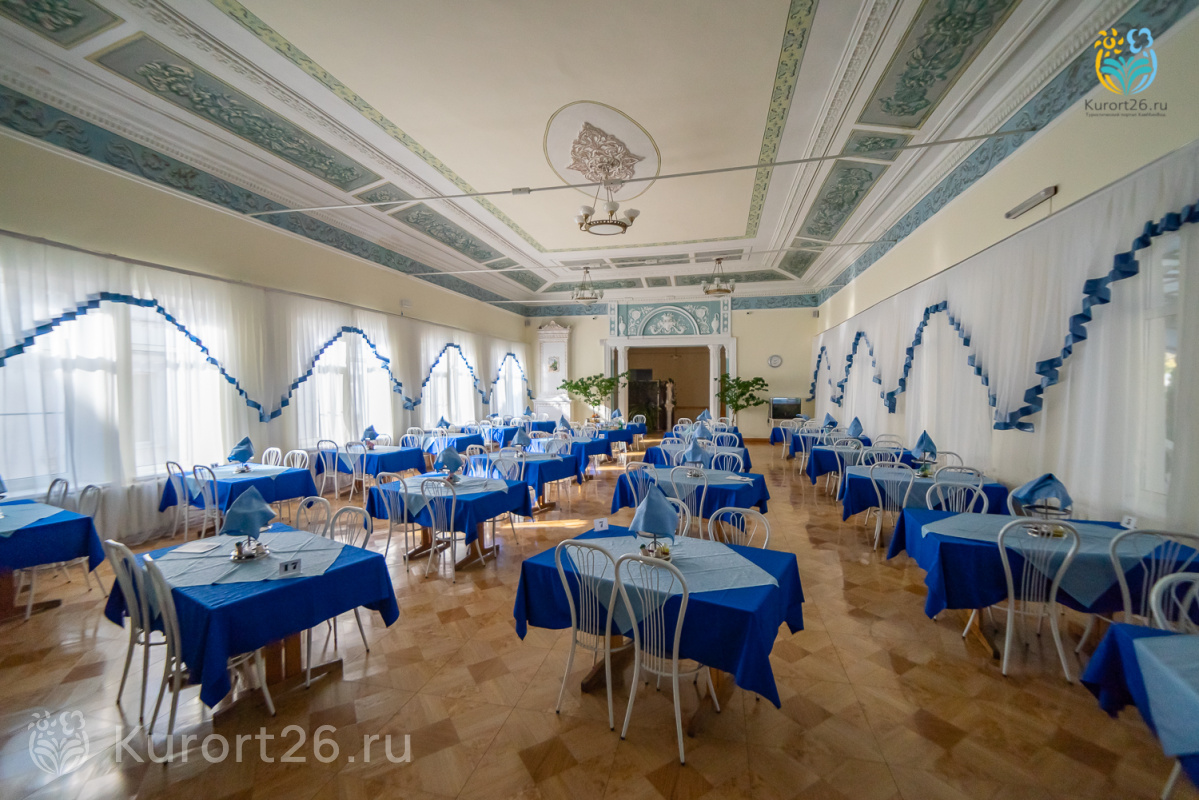 Питание в санатории организовано 4-6 раз в день. Частота приемов пищи зависит от назначенной диеты. Диету подбирает лечащий врач с учётом имеющихся заболеваний. Гости выбирают и заказывают блюда по меню. Перед отъездом гостям дарят памятку по правильному питанию.