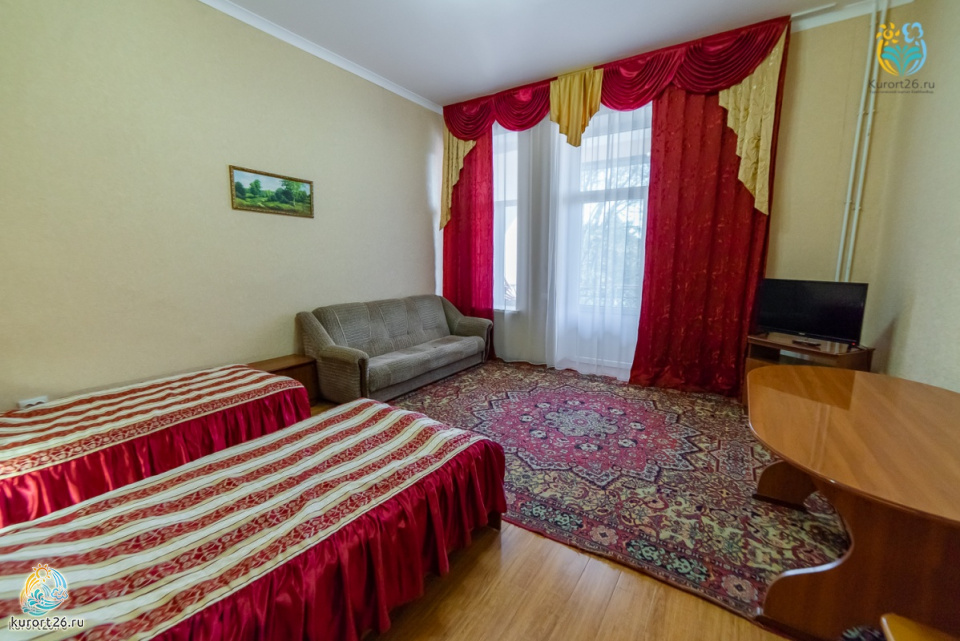 холодильник, телевизор, набор чайной посуды, балкон, интернет в номере, ванные принадлежности, двуспальная кровать, шкаф, набор мягкой мебели, прикроватные тумбочки, односпальная кровать, электрочайник, два санузла с ванной/душем