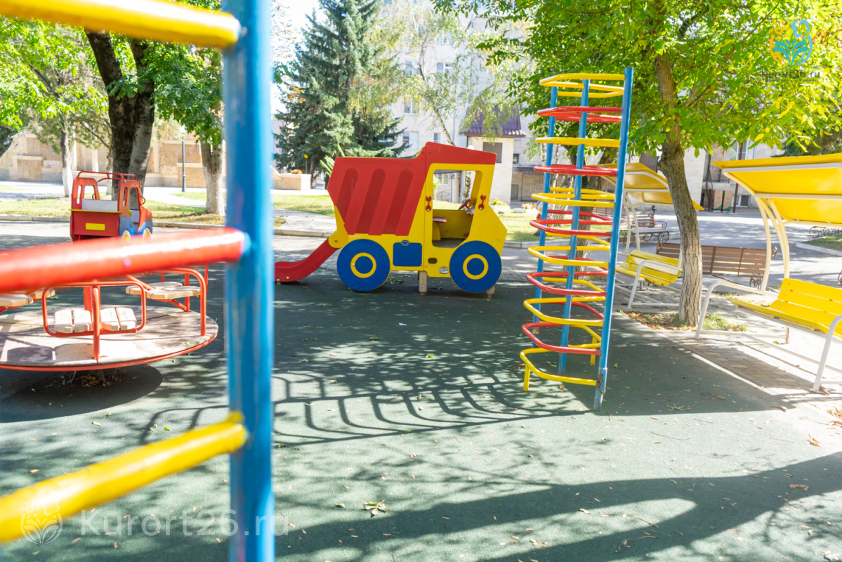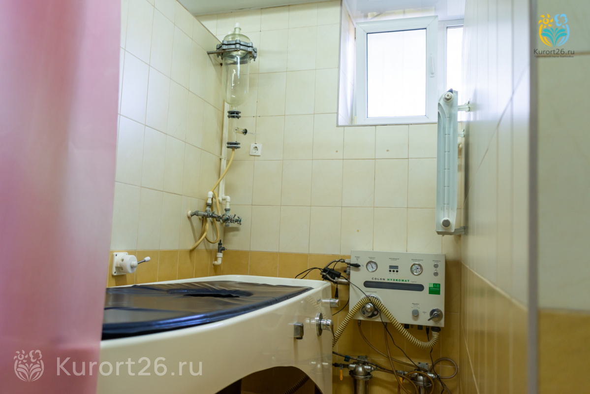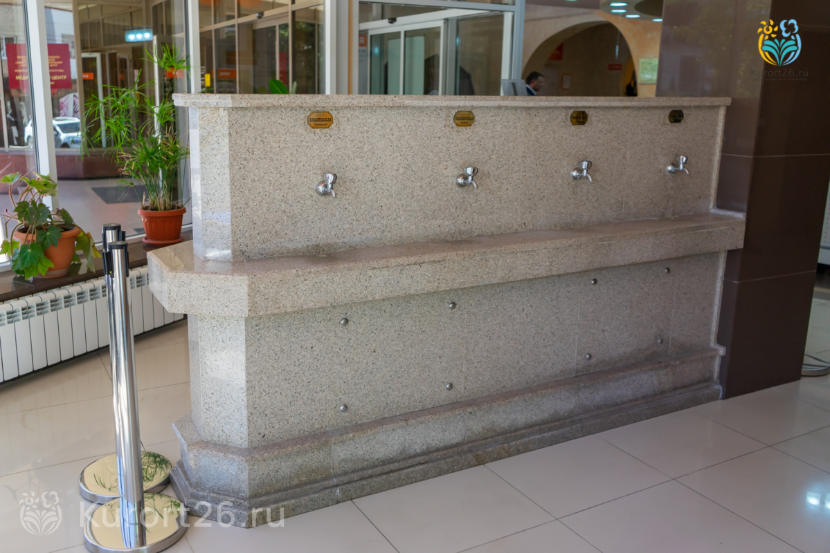 У санатория есть собственный минералопровод и ванное отделение. Поэтому вам не придётся покидать территорию санатория для того, чтобы пройти процедуры. Также у санатория есть собственный питьевой бювет с тремя типами минеральной воды.