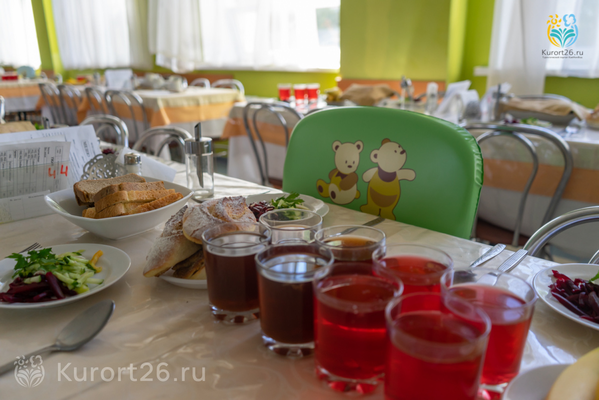 Для отдыхающих с маленькими детьми в столовой есть детские столы-стулья.