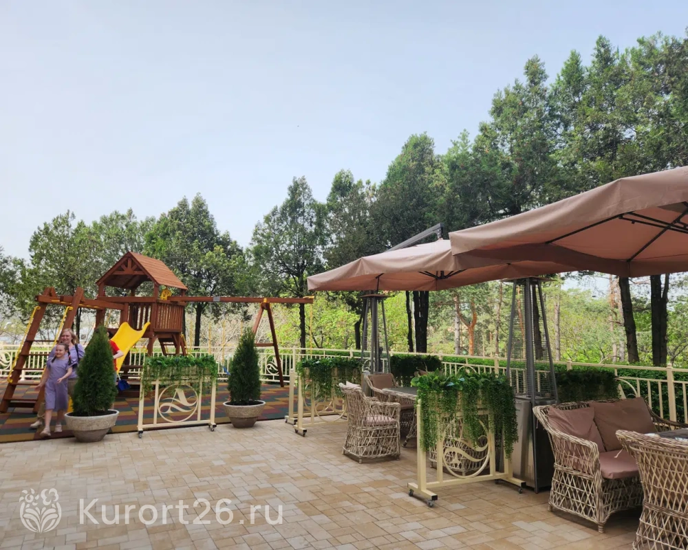 Отель находится в Ребровой балке у входа в Центральную часть курортного парка Кисловодска. По маршрутам терренкуров можно выйти к Храму Воздуха, на смотровые площадки с видом на Кавказский хребет и Эльбрус.