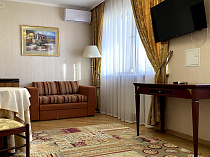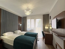 холодильник, кондиционер, телевизор, фен, набор чайной посуды, балкон, сейф, телефон, интернет в номере, санузел с душевой кабиной, ванные принадлежности, двуспальная кровать, прикроватные тумбочки, ванная комната, чайный набор