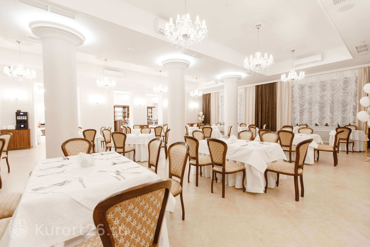 В путёвку включено трёхразовое питание «шведский стол», организованное в обеденном зале «Гранат» (номера категории «Стандарт») и ресторане «Панорама» («Премиум», «Люкс», «Апартамент»). В тёплое время года работает открытая терраса. Также есть фито-бар, лобби-бар и бар в ресторане «Панорама».