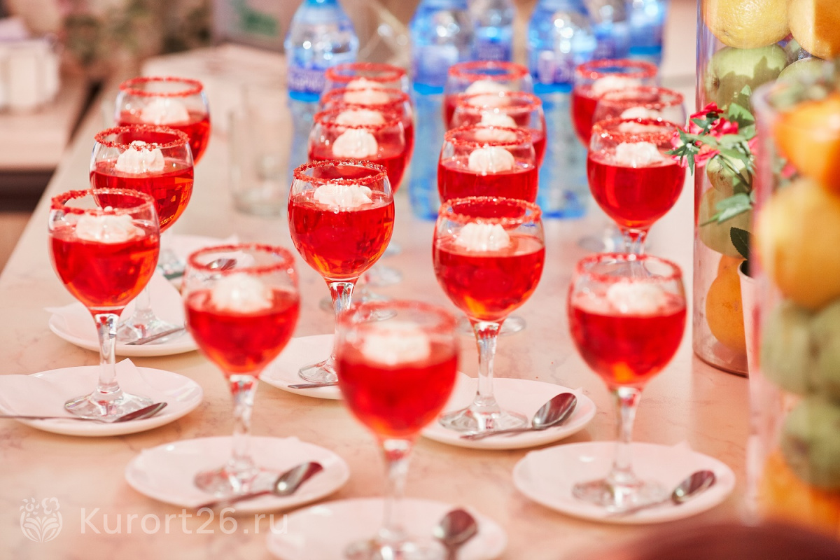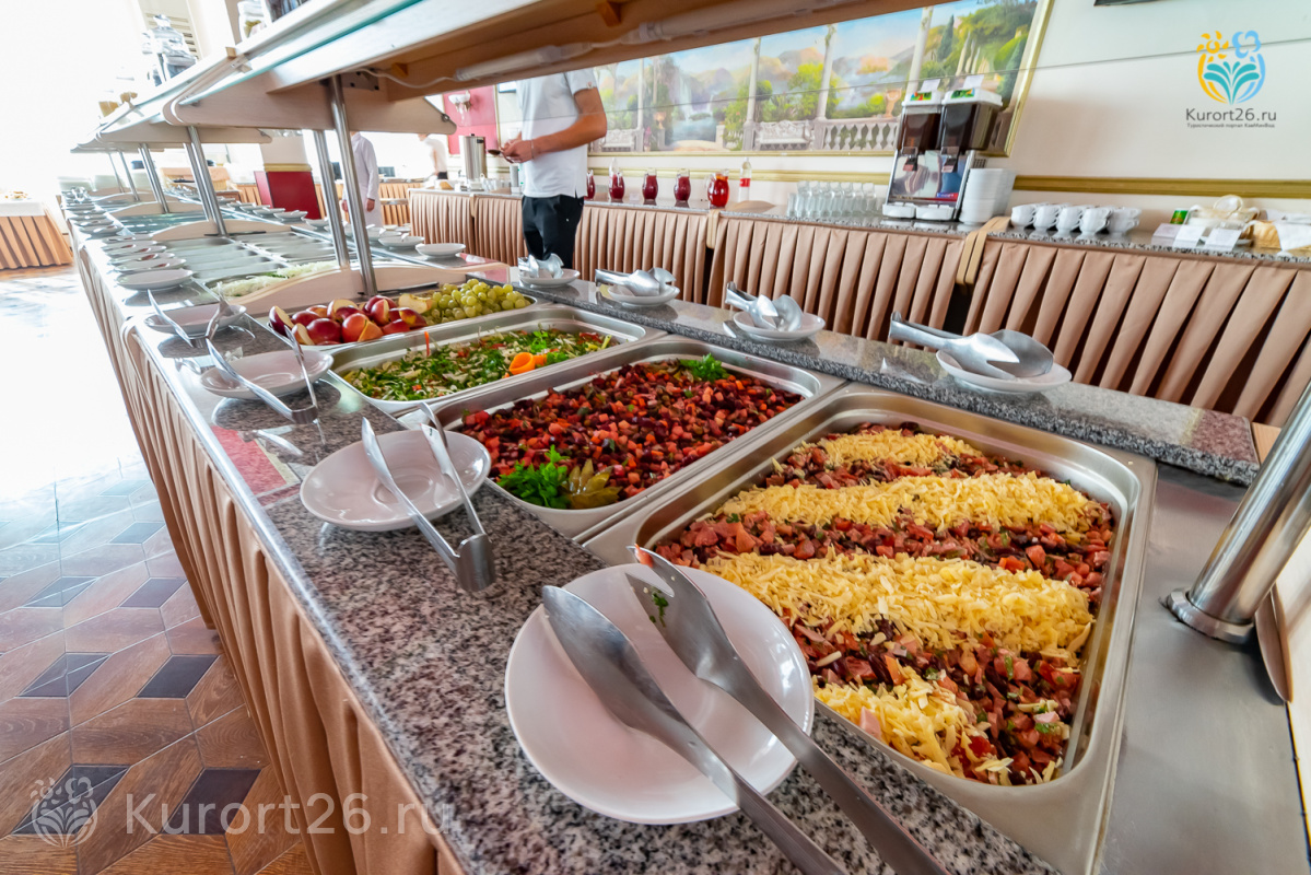 В путёвку включено трёхразовое питание «шведский стол». Меню разработано с учётом рекомендаций врачей-диетологов — включает как диетические, так и традиционные кавказские блюда.