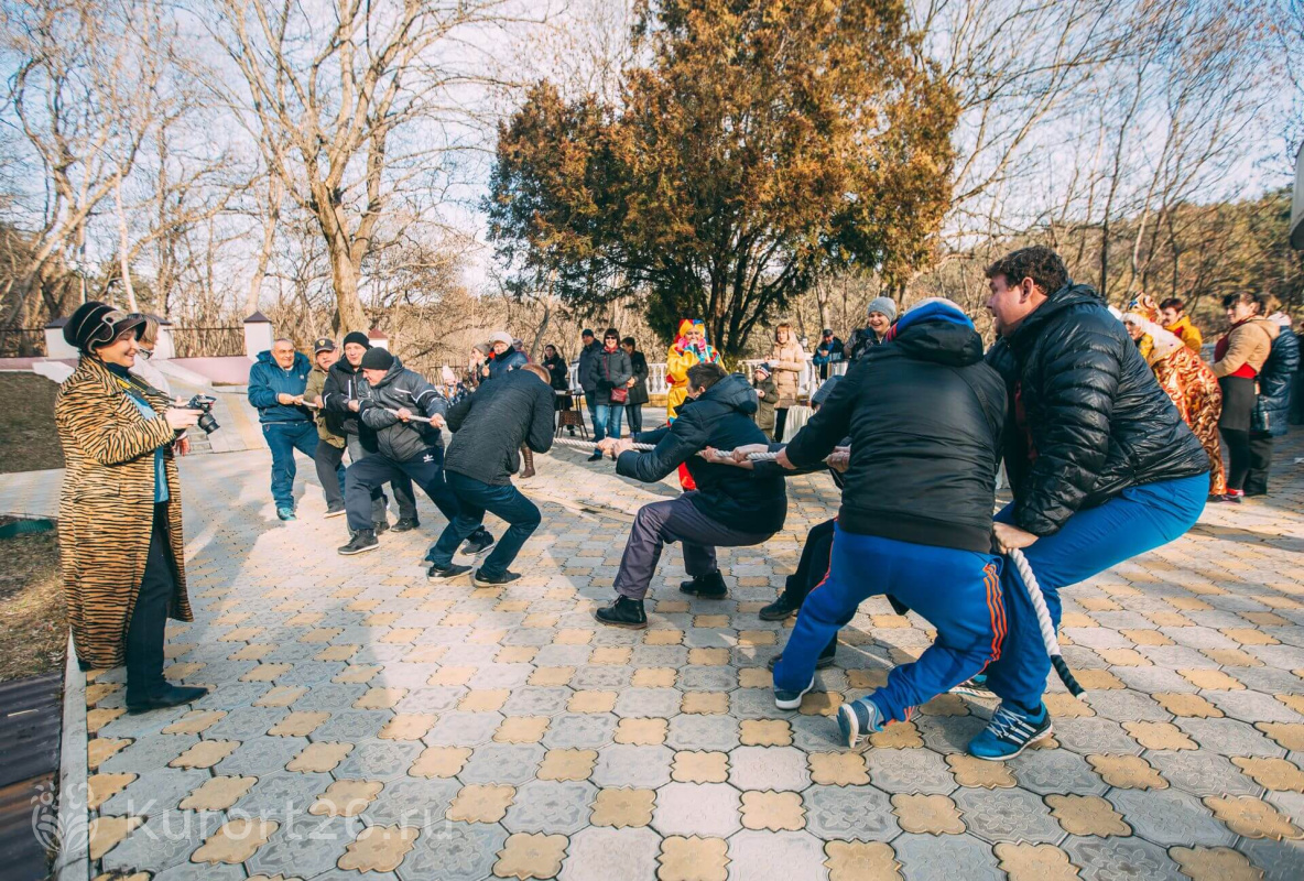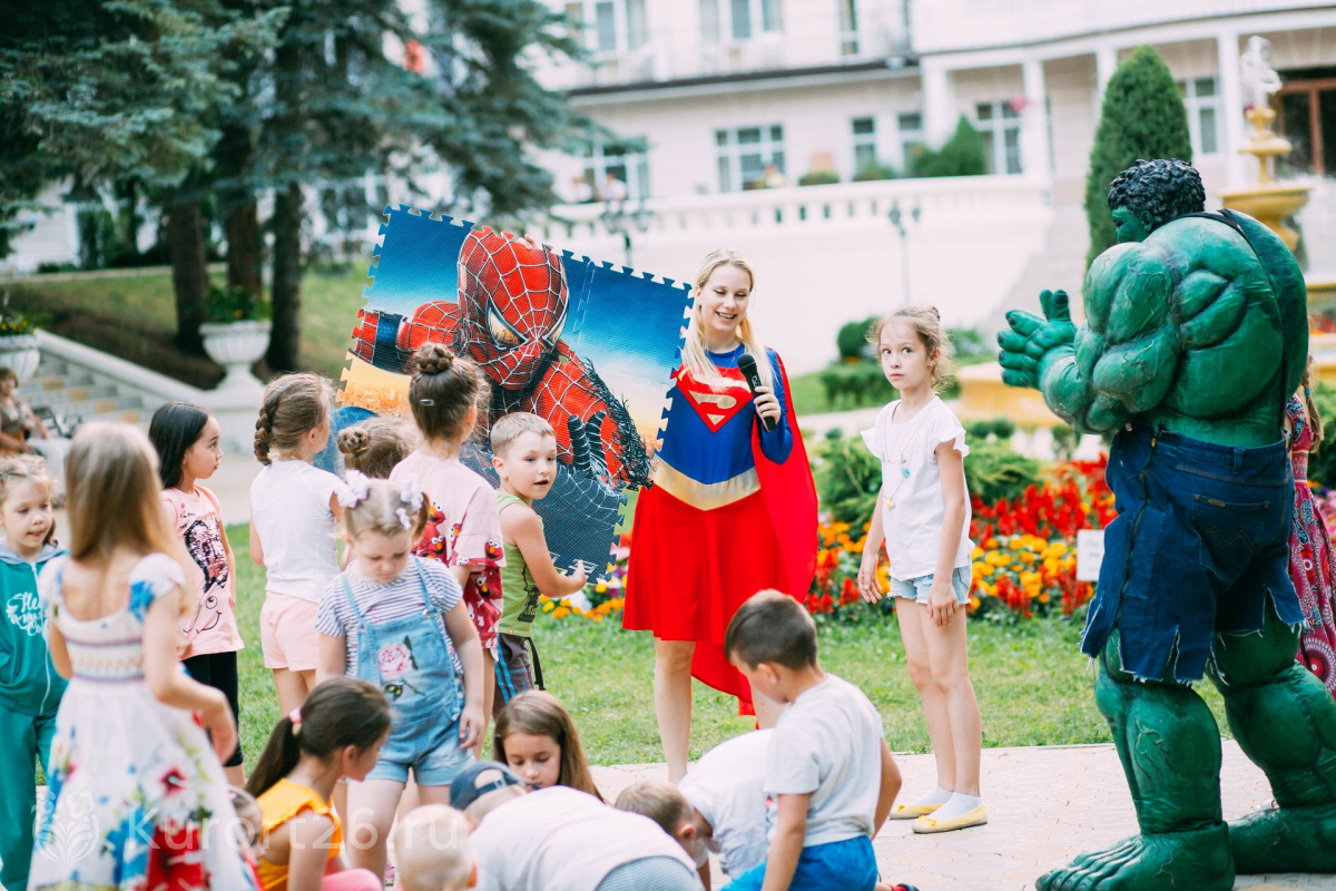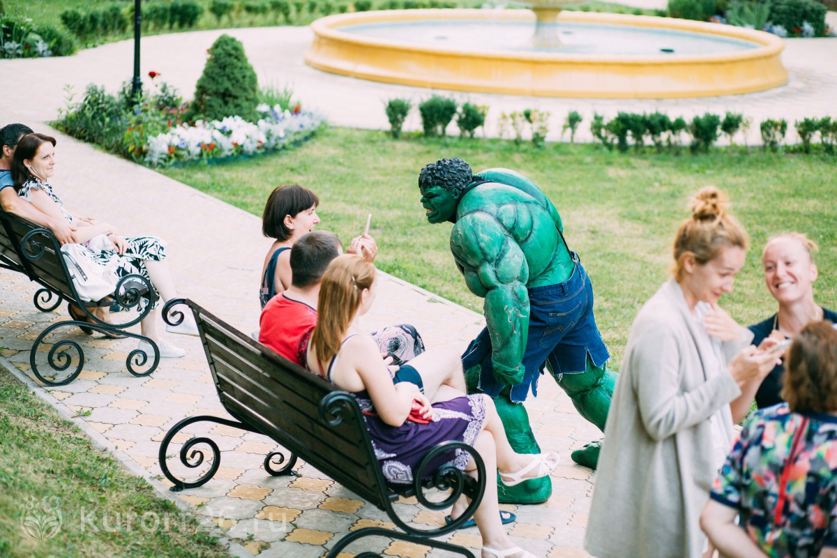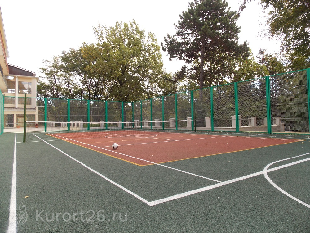 - Отдых с детьми от 2-х лет, лечение — с 4-х лет. Работает детский клуб «Карамелька», открытая детская площадка с безопасным покрытием. Ежедневная программа детской анимации, активные игры, шоу с ростовыми куклами. Рядом с санаторием расположен верёвочный городок
