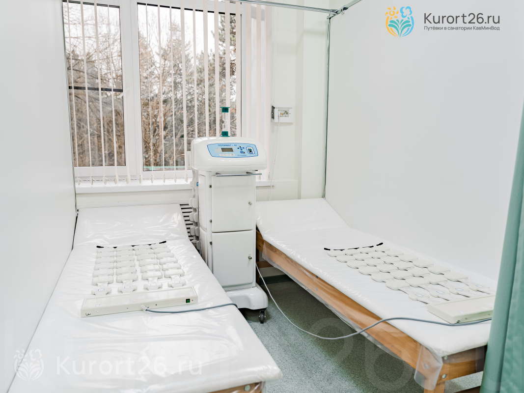 Лечебная база включает 26 видов физиопроцедур, бальнеолечение, грязелечение, иглорефлексотерапию, гирудотерапию, соляную пещеру, внутривенное лазерное облучение крови (ВЛОК), лечебные капельницы.