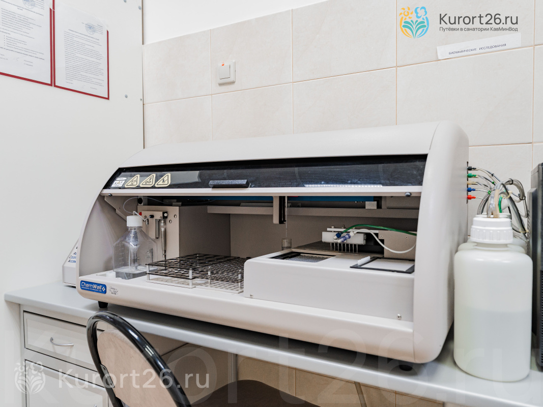В санатории сильная лечебная база. Приём ведут специалисты 16 профилей, включая редкие профили: проктолог, рефлексотерапевт и гирудотерапевт. Собственная лаборатория (более 60 ключевых исследований). Проводится диагностика: эндоскопия, УЗИ, ЭКГ, РЭГ, реовазография конечностей, суточное мониторирование ЭКГ и АД, пневмотахометрия.