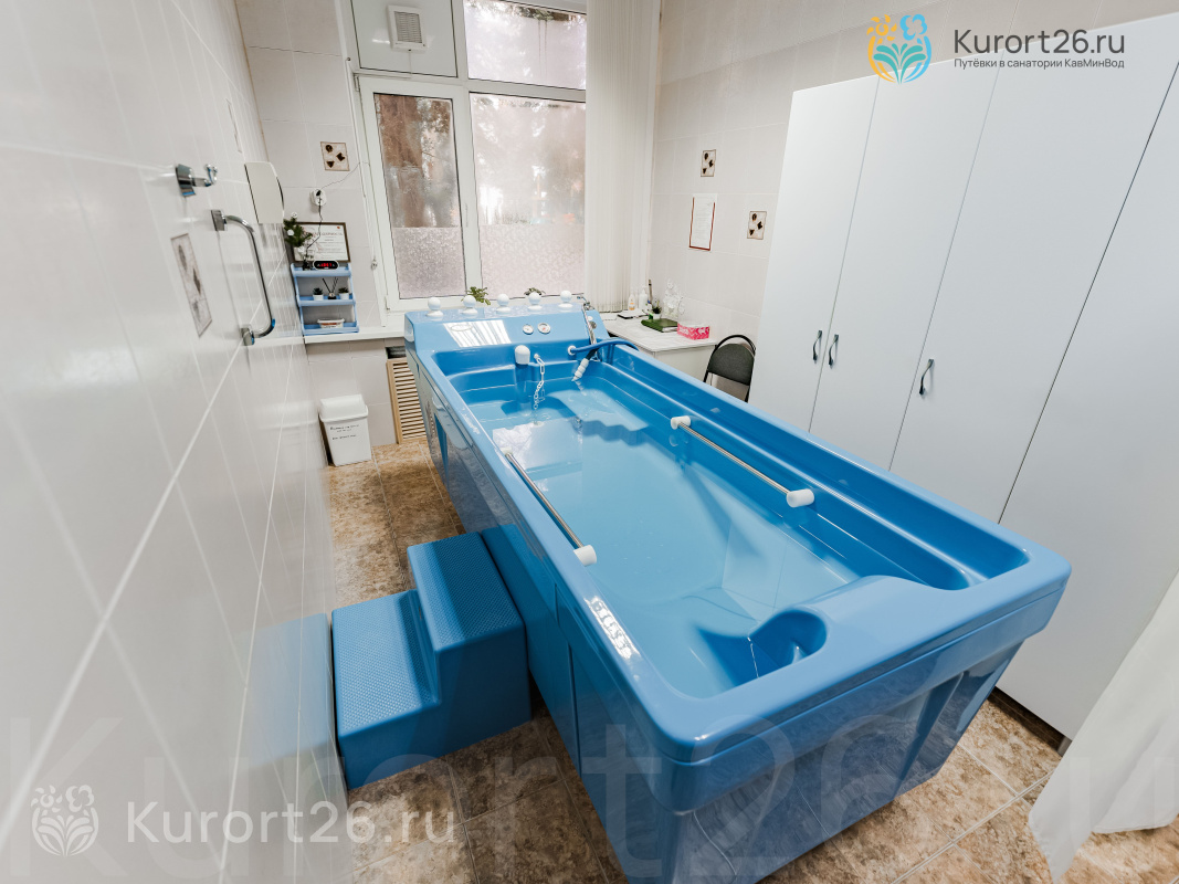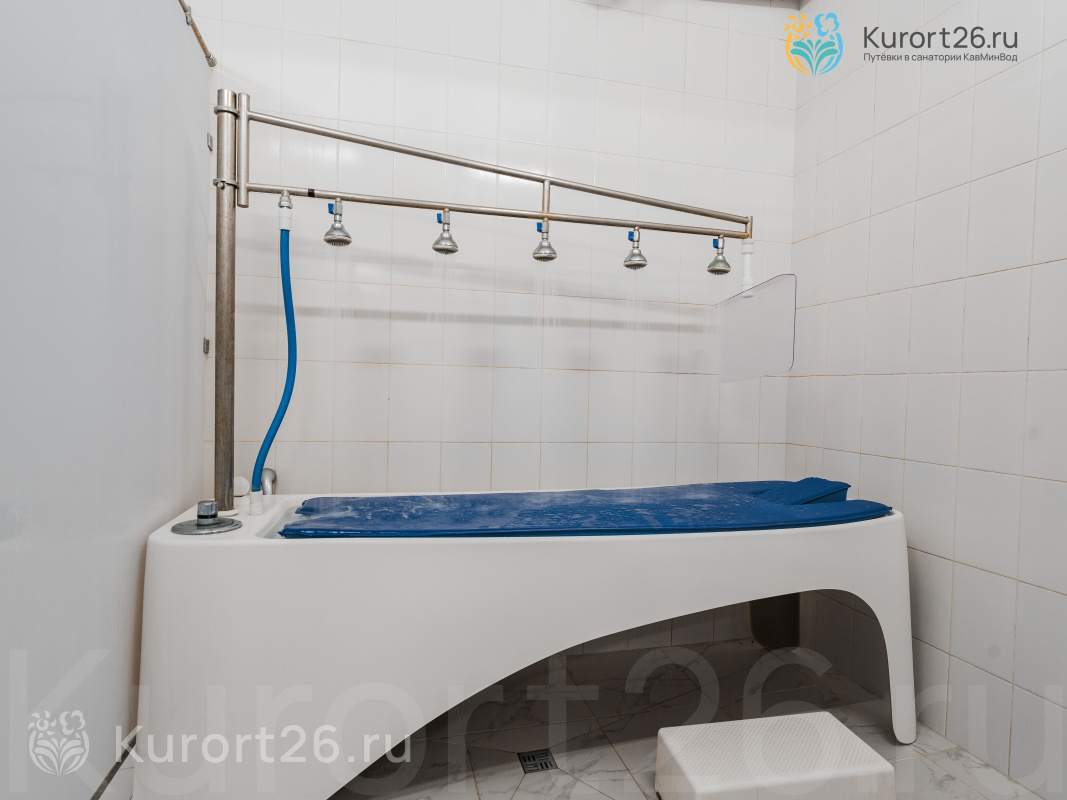- Лечебные ванны и души, включая нарзанные, коллагеновые, пантовые, нафталановые, серные, молочно-ванильные ванны «Клеопатра», подводный душ-массаж и др.
