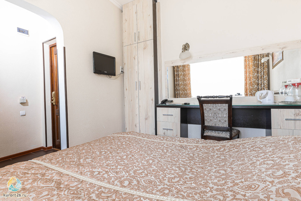 холодильник, кондиционер, чайник, фен, набор чайной посуды, утюг, балкон, ванные принадлежности, двуспальная кровать, набор мягкой мебели, прикроватные тумбочки, ванная комната, два телевизора