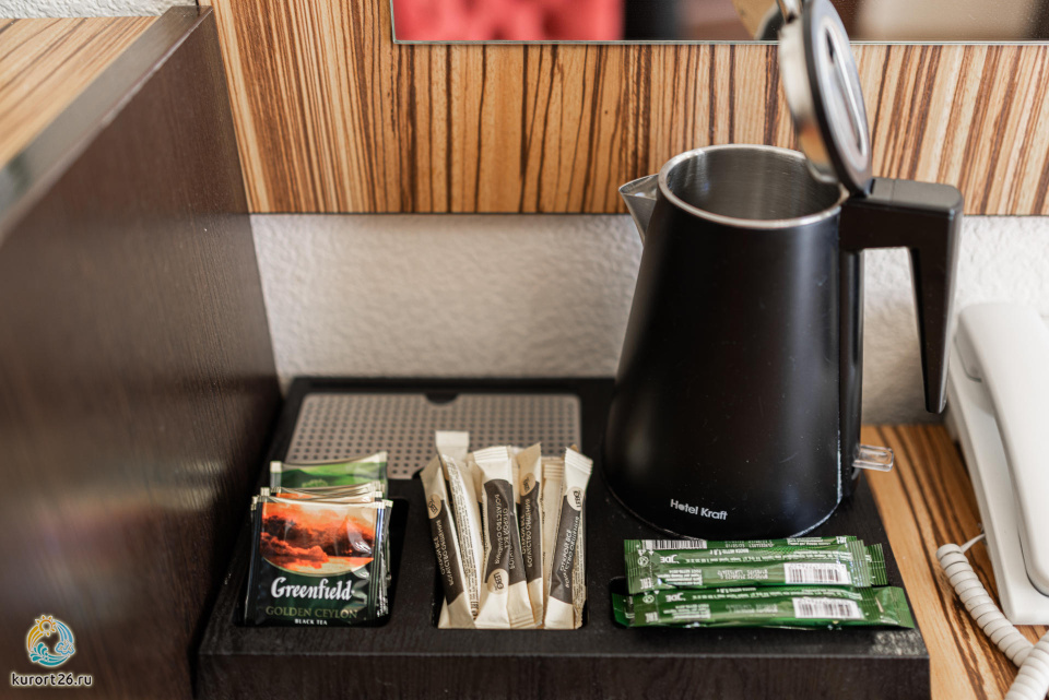 холодильник, кондиционер, телевизор, фен, сейф, телефон, санузел с душевой кабиной, тапочки, утюг с гладильной доской, электрочайник, халаты, Набор посуды