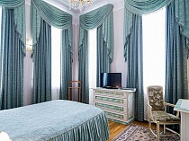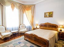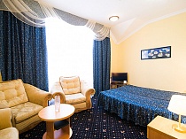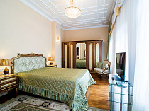 холодильник, кондиционер, телевизор, чайник, фен, набор чайной посуды, гладильная доска, утюг, балкон, сейф, душ, телефон, интернет в номере, мини-бар, санузел с душевой кабиной, ванные принадлежности, халат, тапочки, двуспальная кровать, шкаф, прикроватные тумбочки, односпальная кровать, односпальная кровать: 2 шт, мягкая мебель, торшер, утюг с гладильной доской, 4 стула, диван, две тумбочки, ванна, халаты, банные принадлежности, чайный набор