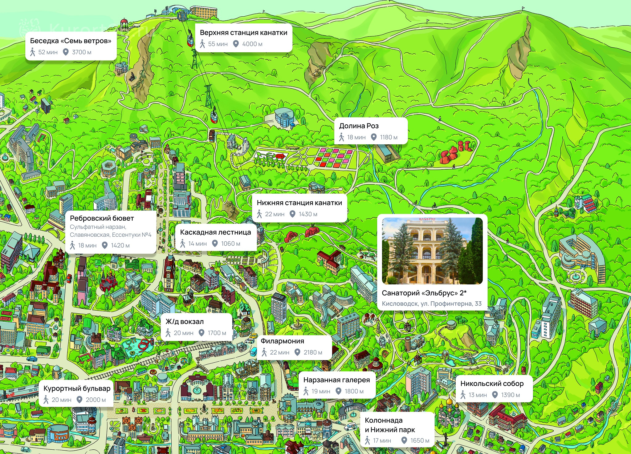 Мы нарисовали подробные карты-путеводители по городам КМВ, чтобы вы чувствовали себя комфортно и уверенно в новом месте. Электронную карту отправим на почту, а печатную положим в подарочный набор любимого гостя 🧡