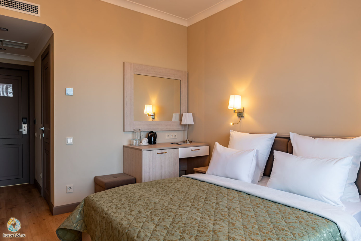 В санатории «имени Горького» вас разместят в комфортном номере одного из двух жилых корпусов, рассчитанных на 272 места. В номерах есть всё необходимое: бытовая и электрическая техника, мебель в классическом стиле, просторный балкон. На процедуры и в столовую вы будете ходить в соседнее здание по тёплому переходу.
