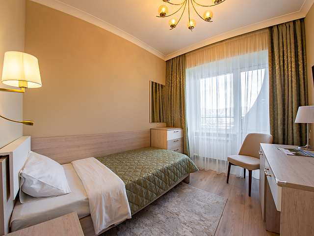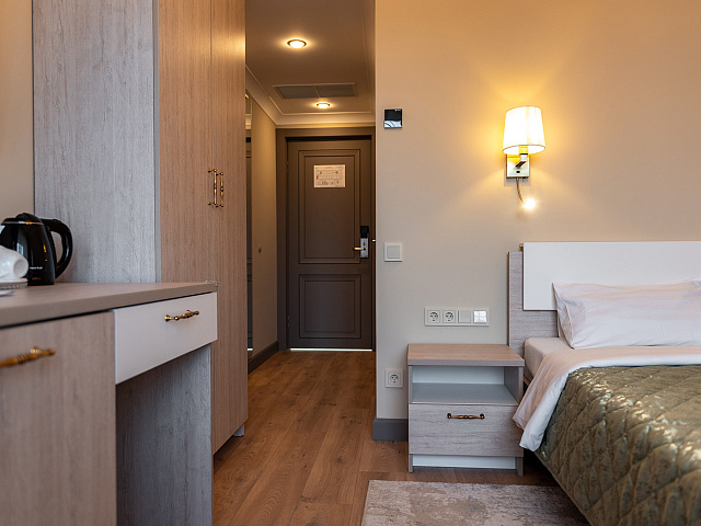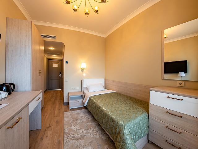 холодильник, телевизор, набор чайной посуды, балкон, интернет в номере, ванные принадлежности, шкаф, односпальная кровать, электрочайник, стол, ванная комната, кресло