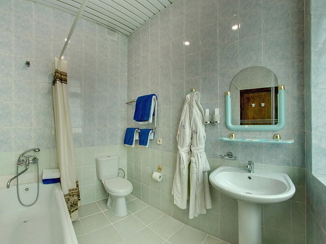 холодильник, кондиционер, телевизор, фен, набор чайной посуды, балкон, телефон, интернет в номере, ванные принадлежности, сервант, двуспальная кровать, шкаф, набор мягкой мебели, прикроватные тумбочки, утюг с гладильной доской, электрочайник, стол, ванная комната, два санузла с ванной/душем, набор уличной мебели, журнальный столик, посуда, набор полотенец, Гигиенический душ, кухонное оборудование, гигиенические принадлежности