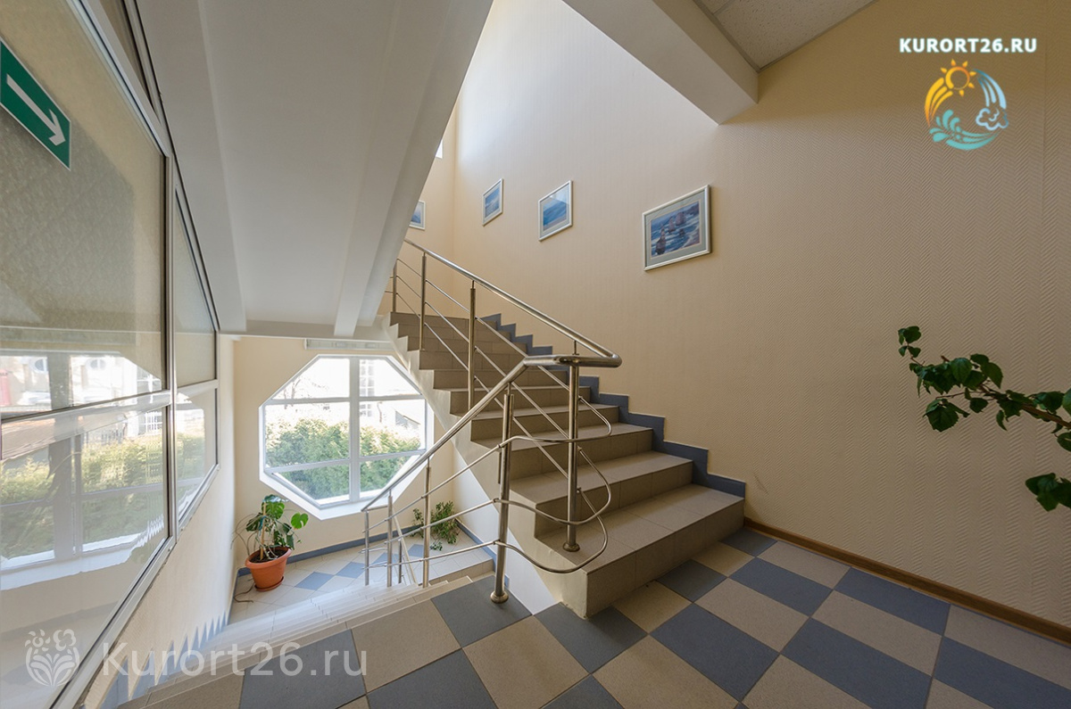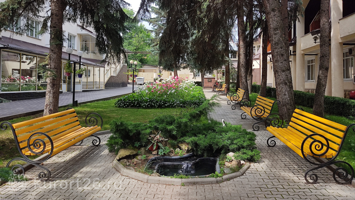 - Камерный санаторий на 78 мест. Есть номера с уютными балконами с ротанговой мебелью и видом на внутренний дворик