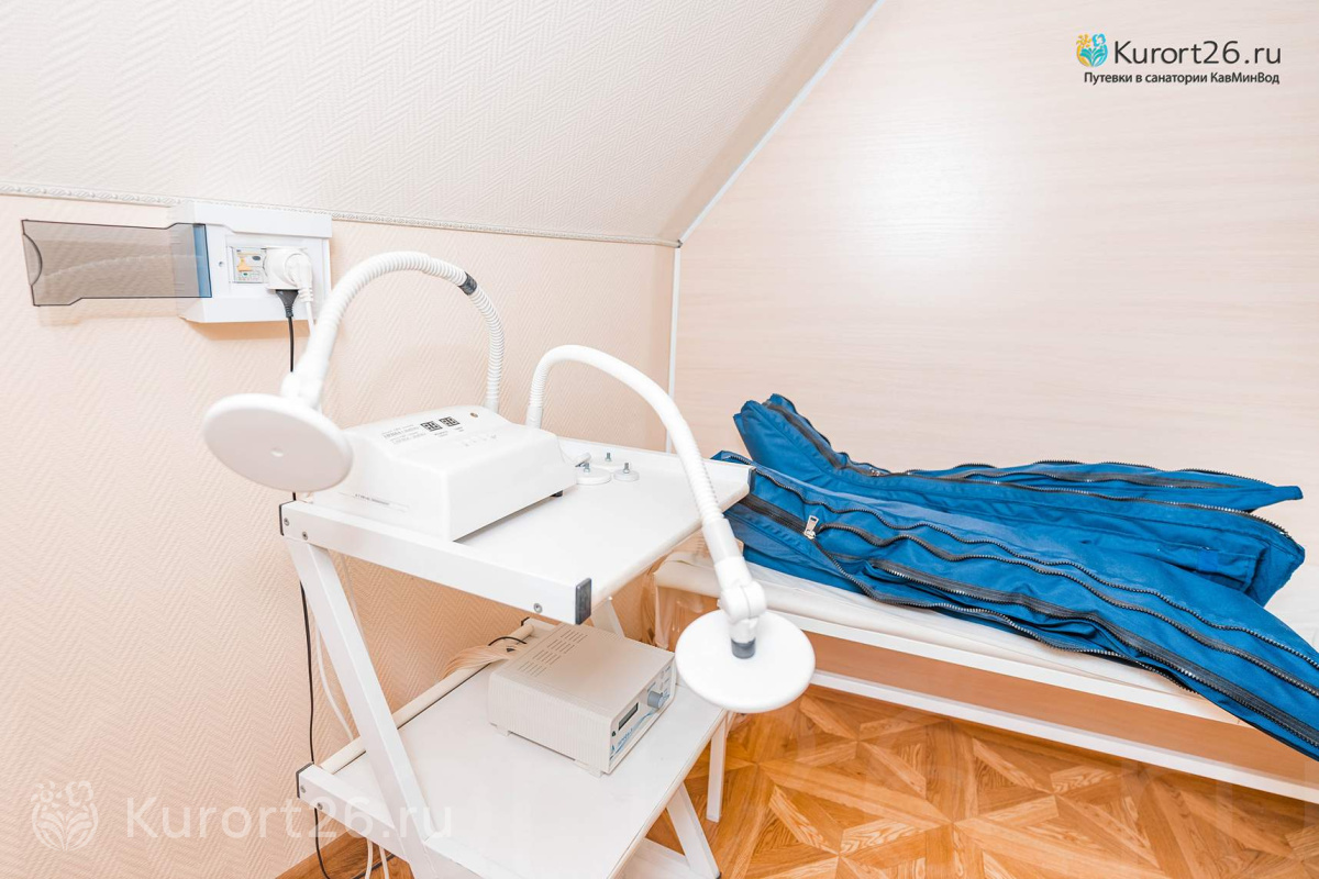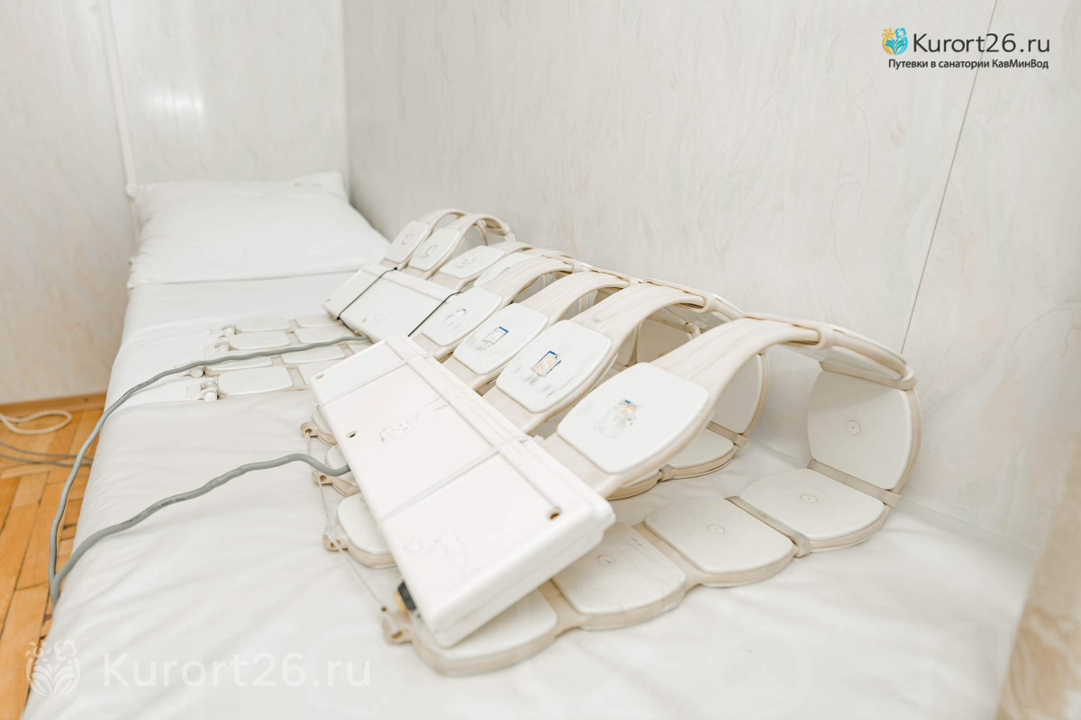 Лечение: диетическое питание, питьевое лечение минеральными водами, ванны нарзанные/серные/бишофитные/искусственные (1 вид по показаниям), лечебный душ, грязевые аппликации на воротниковую область, прессотерапия, аппаратная физиотерапия, массаж, АМОК, фиточай, лечебная физкультура, свободное плавание.