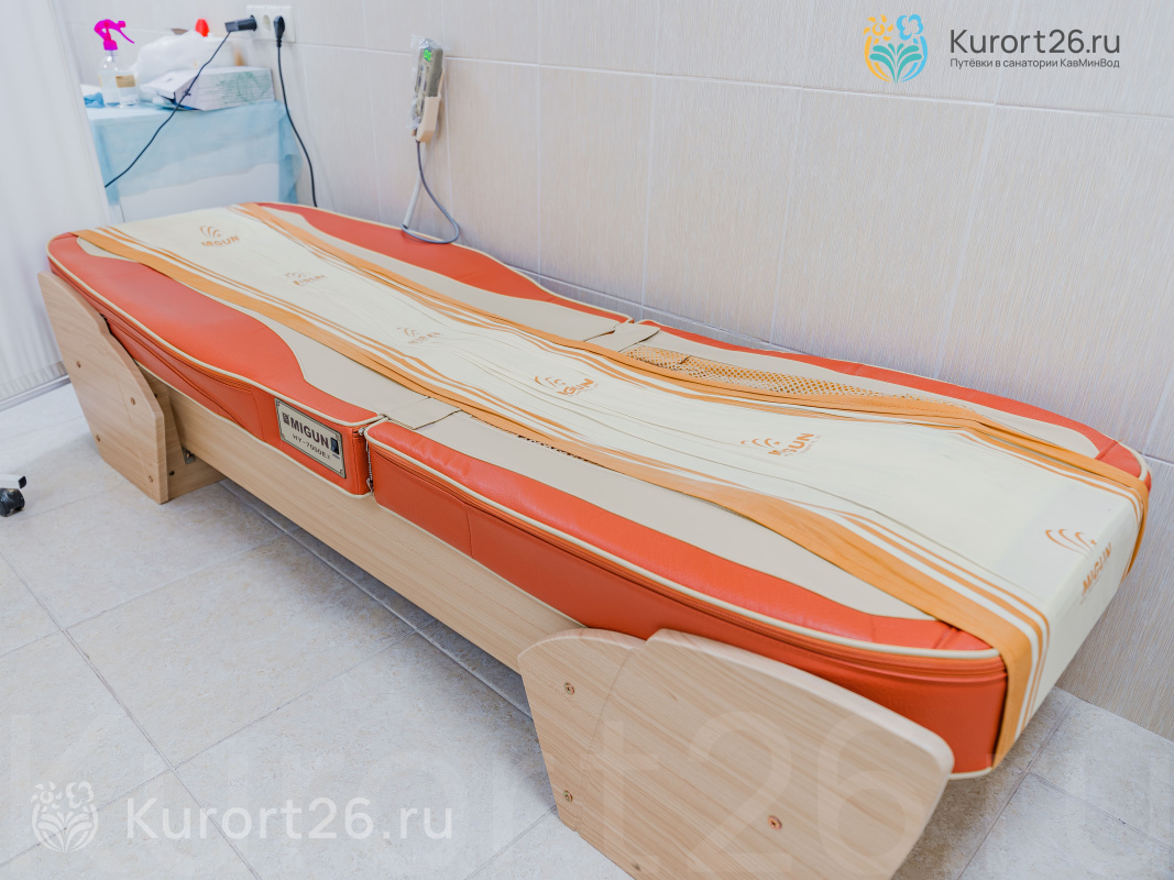 - Несколько видов аппаратного массажа: кушетка «Ормед», термическая массажная кровать «Мигун», термомассаж ног Kawanuri Miocco, массаж эластичным псевдокипящим слоем (ЭПС-терапия)