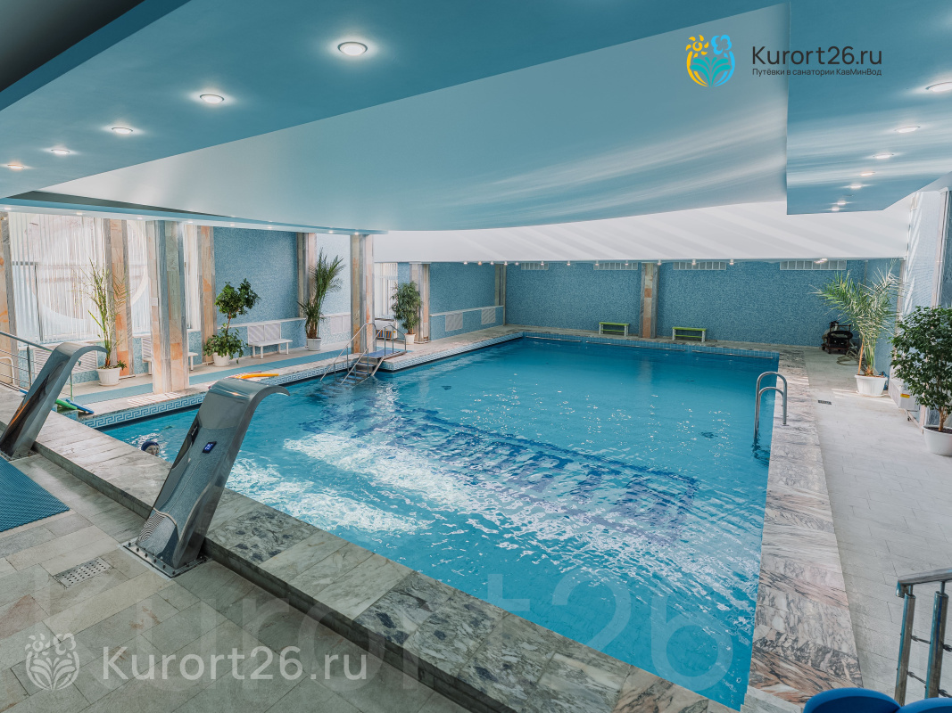 Работает крытый бассейн 10×16 с комплексом гидромассажных каскадов — посещение также входит в путевку.